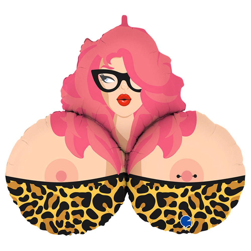 Mrs B Folieballong omfattar en folieballong i form av en tjej med rosa hår, glasögon och stora bröst med djurmönstrad bh. Ballongen fylls med luft eller helium och är ca 89 cm bred och 45 cm hög. Ballongen svävar i upp till 7 dagar med helium.