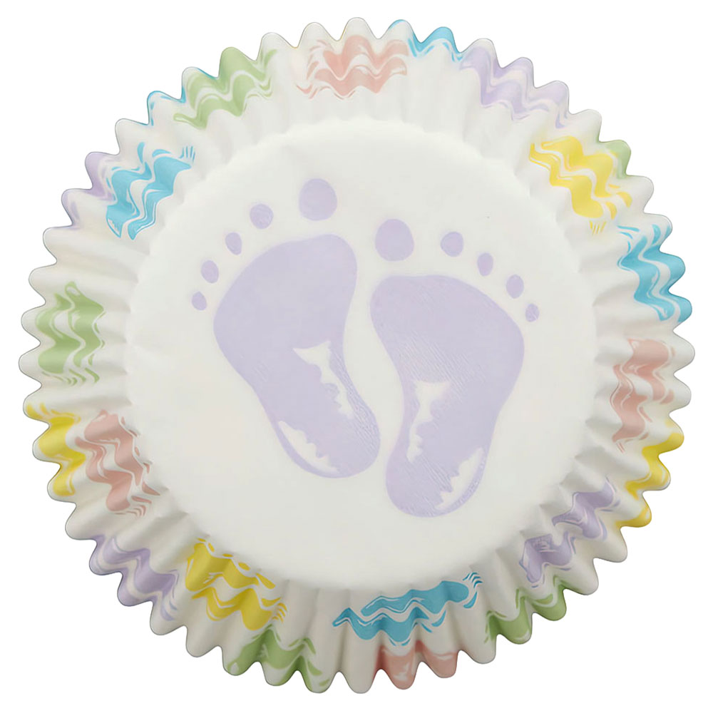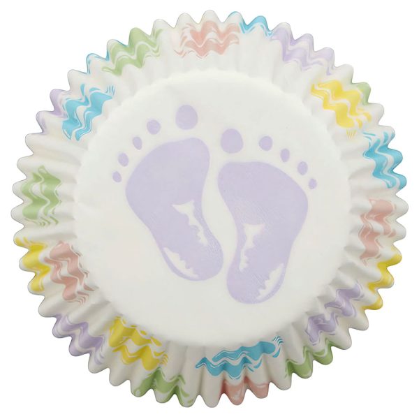 Baking Cups är ett gäng formar med motiv av otroligt söta baby fötter i olika pastellfärger, de är perfekta att baka härligt smarriga muffins och cupcakes i till din babyshower eller kalas med gender reveal! Dessa muffinsformar för babyshower och gender reveal kommer med fötter i färgerna lila, gul, grön, blå och rosa.