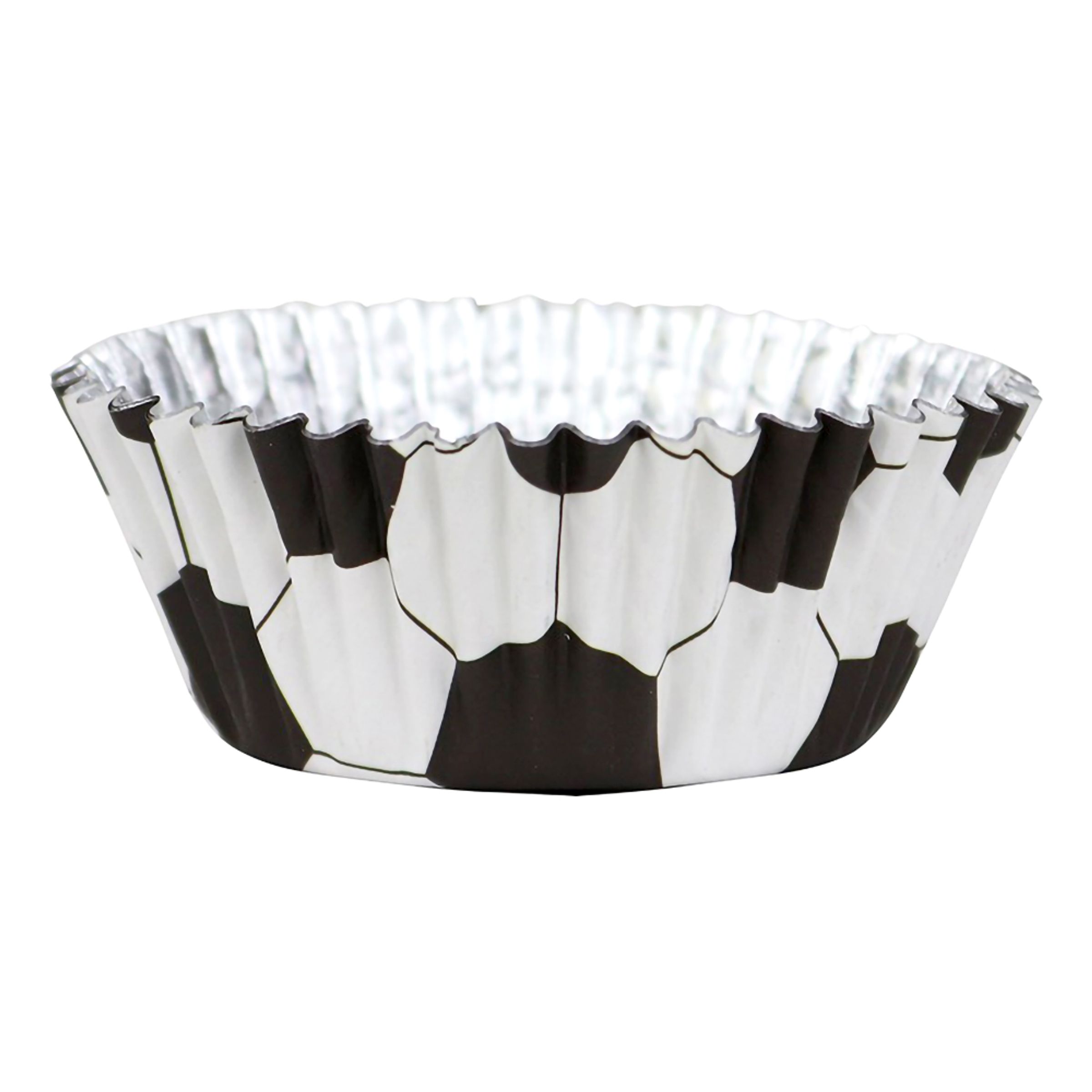 Muffinsformar Folierade Fotboll inkluderar 30 stycken formar med fotbollsmönster på. Insidan är folierade för att säkerställa att det inte uppstår några fettmärken. Formarna passar lika bra till muffins som till kanelbullar och andra bakelser.