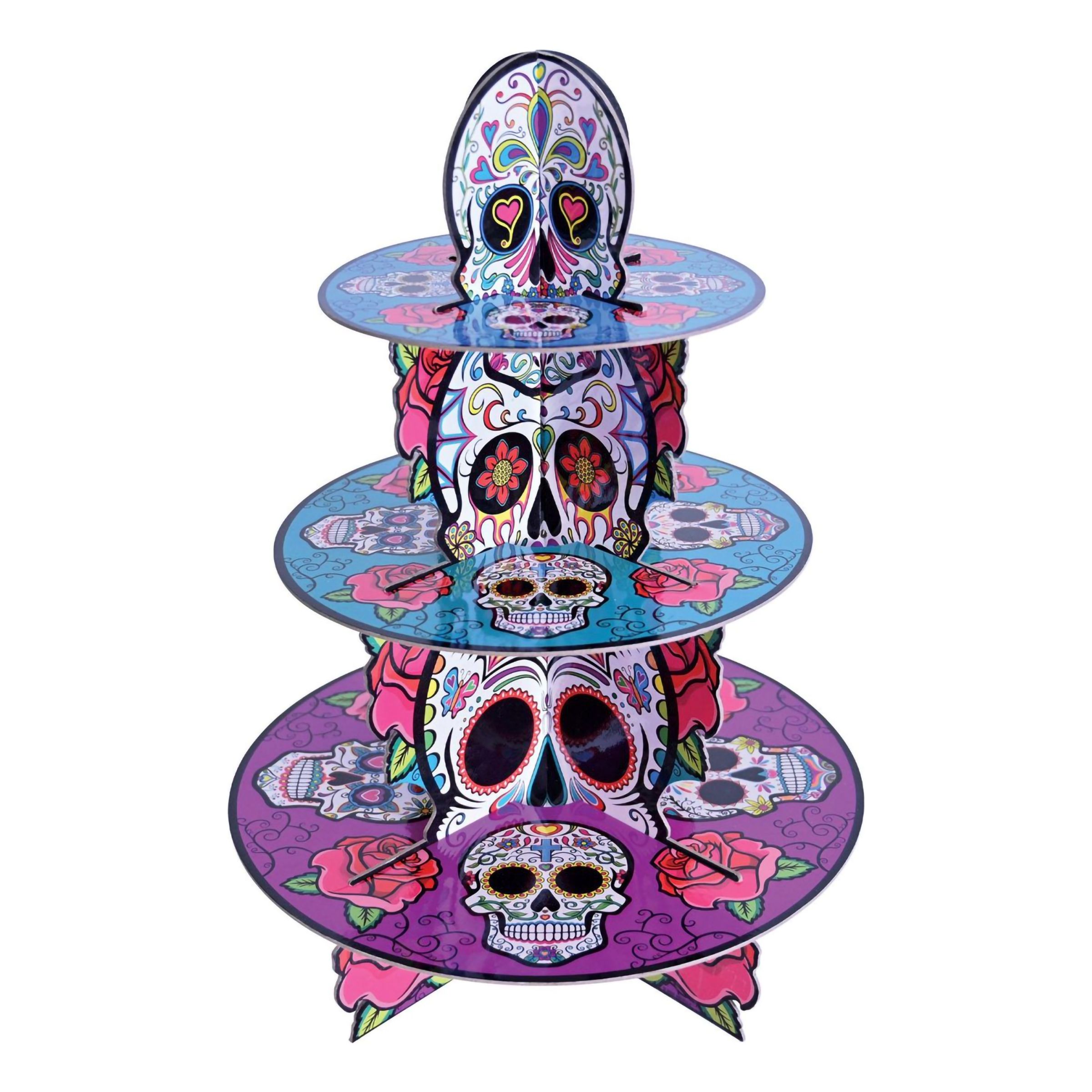 Muffinsställ Day of the Dead är ett riktigt läckert kakställ med tre våningar i Day of the Dead-tema med motiv av sminkade dödskallar och rosor mot flerfärgad bakgrund. Kakstället levereras omonterat, men är plättlätt att montera ihop. Perfekt för en maxad skräckdukning på Halloween eller Day of the Dead-festen!