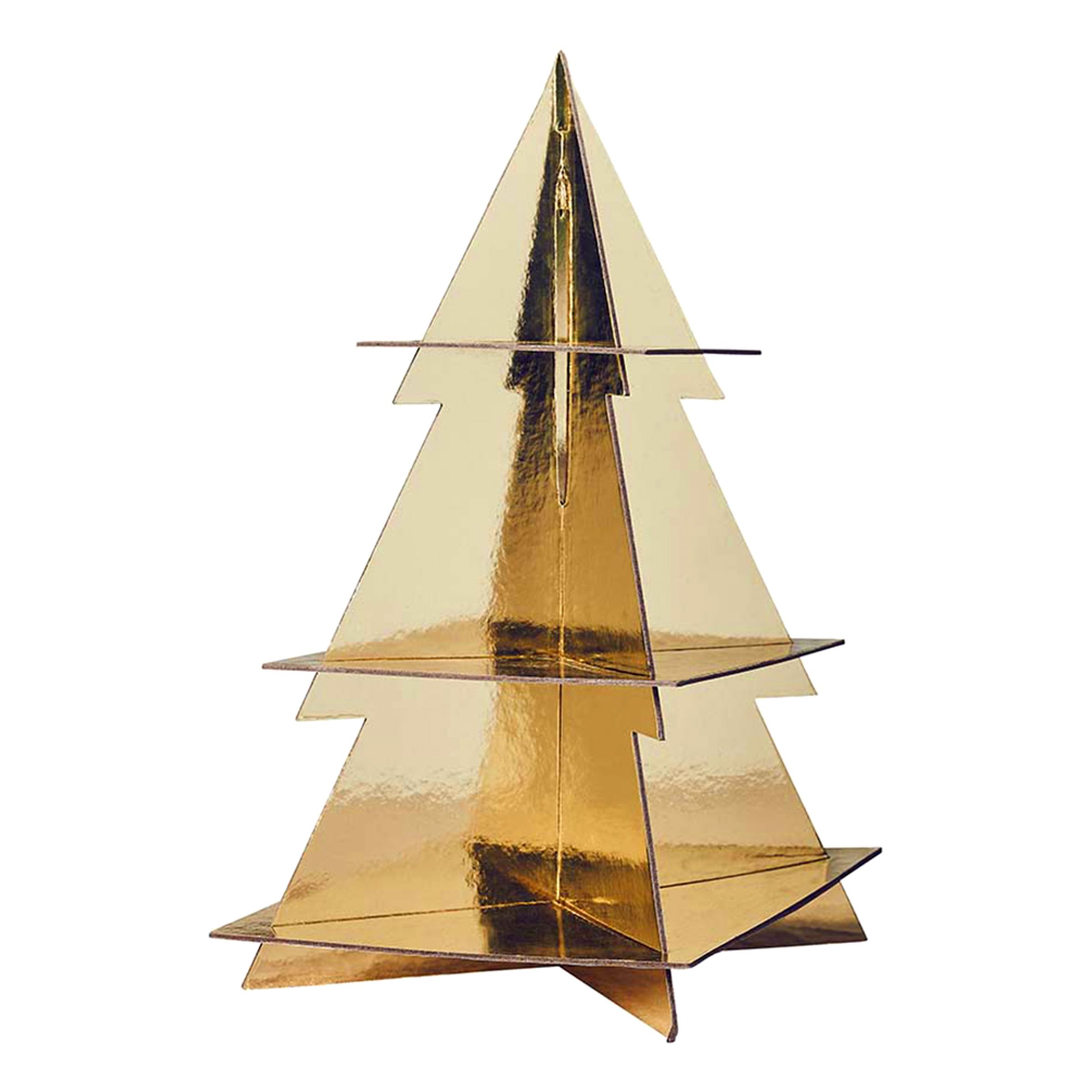 Muffinsställ Julgran Guld är en mycket mysig och användbar gran i papper som skimrar av guld. På varje våning placerar du med fördel dina kakor och sötsaker för maxmal överblick av allt gott som bjuds. God fikajul!