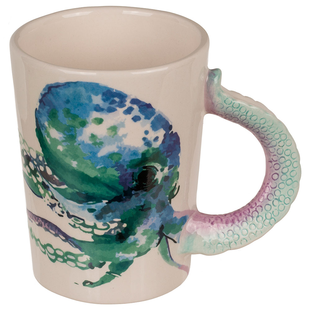– Mugg med bläckfiskmotiv samt öra i form av en bläckfiskarm.