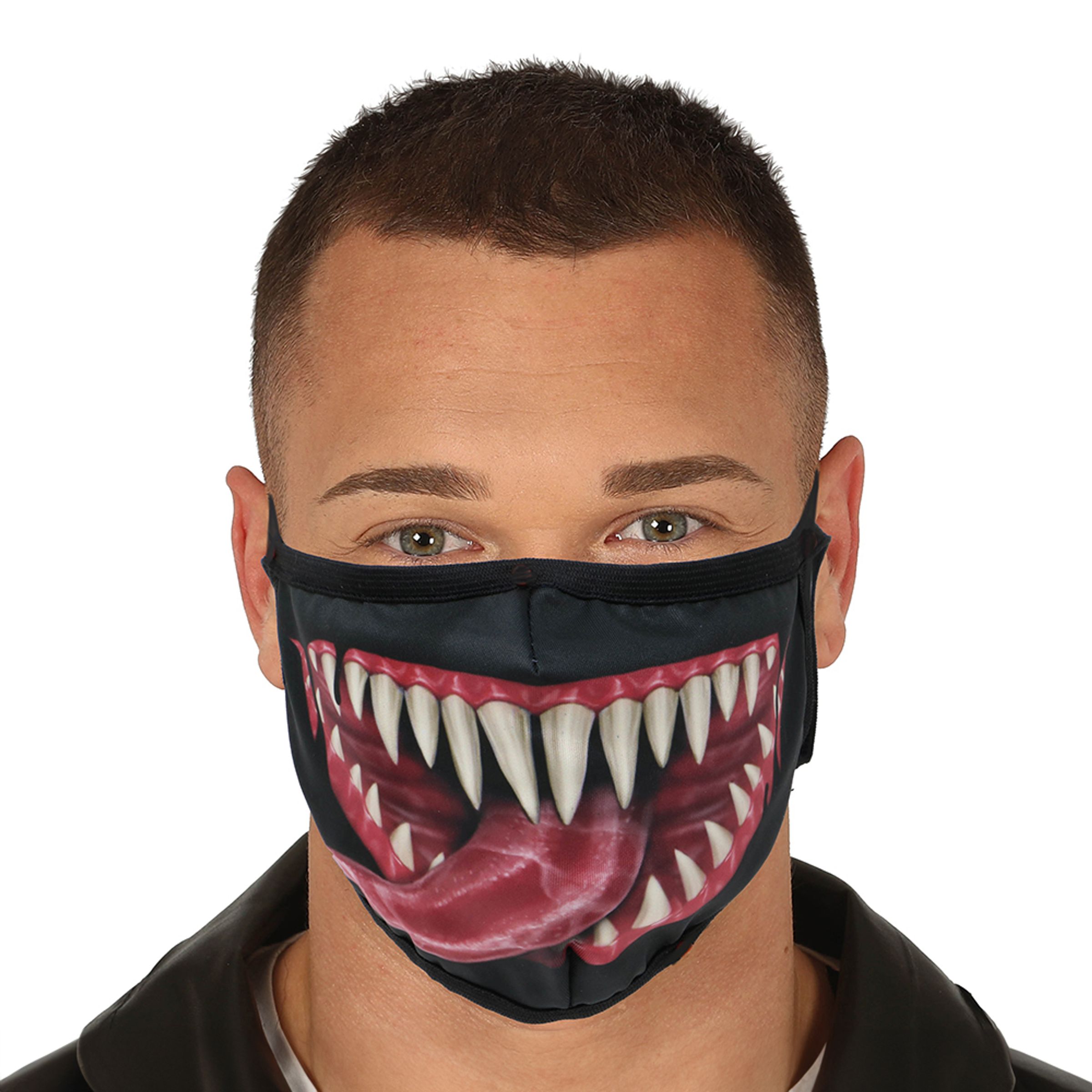Munskydd Venom är ett svart munskydd med en röd monstermun med spetsiga vita tänder och en lång röd tunga från superhjältefilmen Venom. Munskyddet sätts enkelt på med elastiska band runt öronen och kan tvättas i 90 grader. Munskyddet har tre lager. De två yttersta är tillverkade i polyester och det innersta i polyester och bomull. På munskyddet finns en öppning om man vill lägga in filter. Munskyddet finns i en storlek.