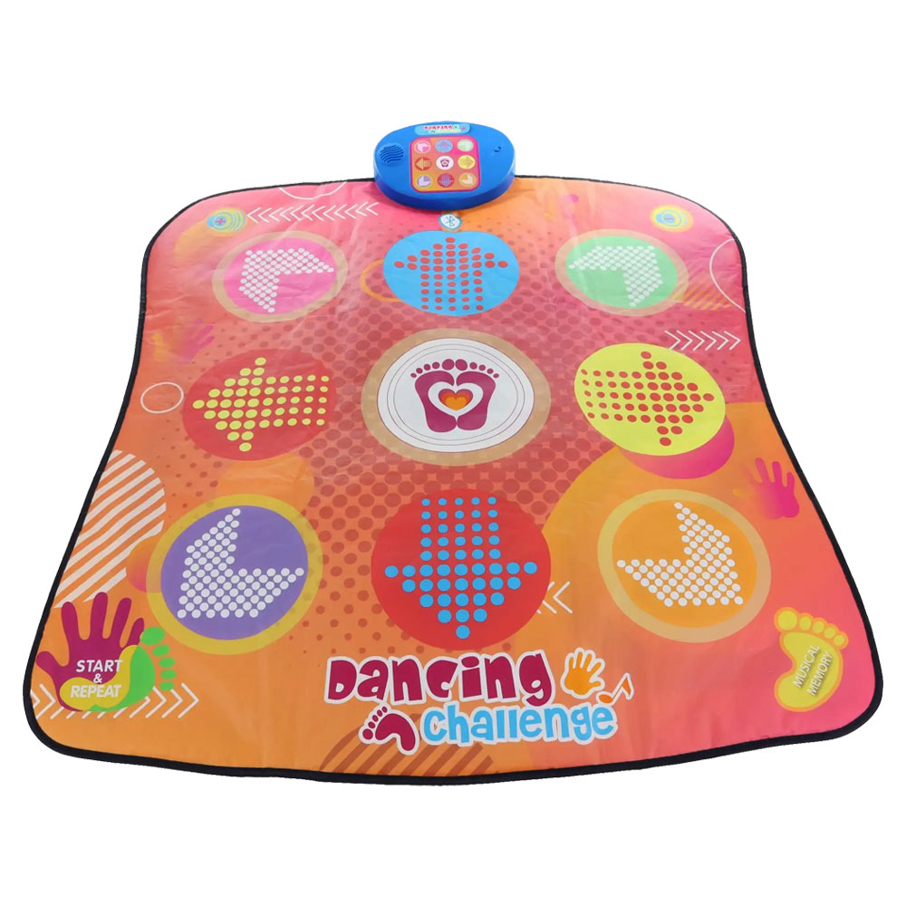 Musik- och Dansmatta Dancing Challenge omfattar en rolig dansmatta med musik och lysande pilar. Hoppa på de lysande pilarna och försök att vinna utmaningen. Dansmattan har dansutmaning upp till nivå 5 och kan även anslutas till en mobiltelefon via bluetooth. Mattan drivs av 3 st AA-batterier och är ca 96 x 101 cm stor. Tillverkad av polyester.