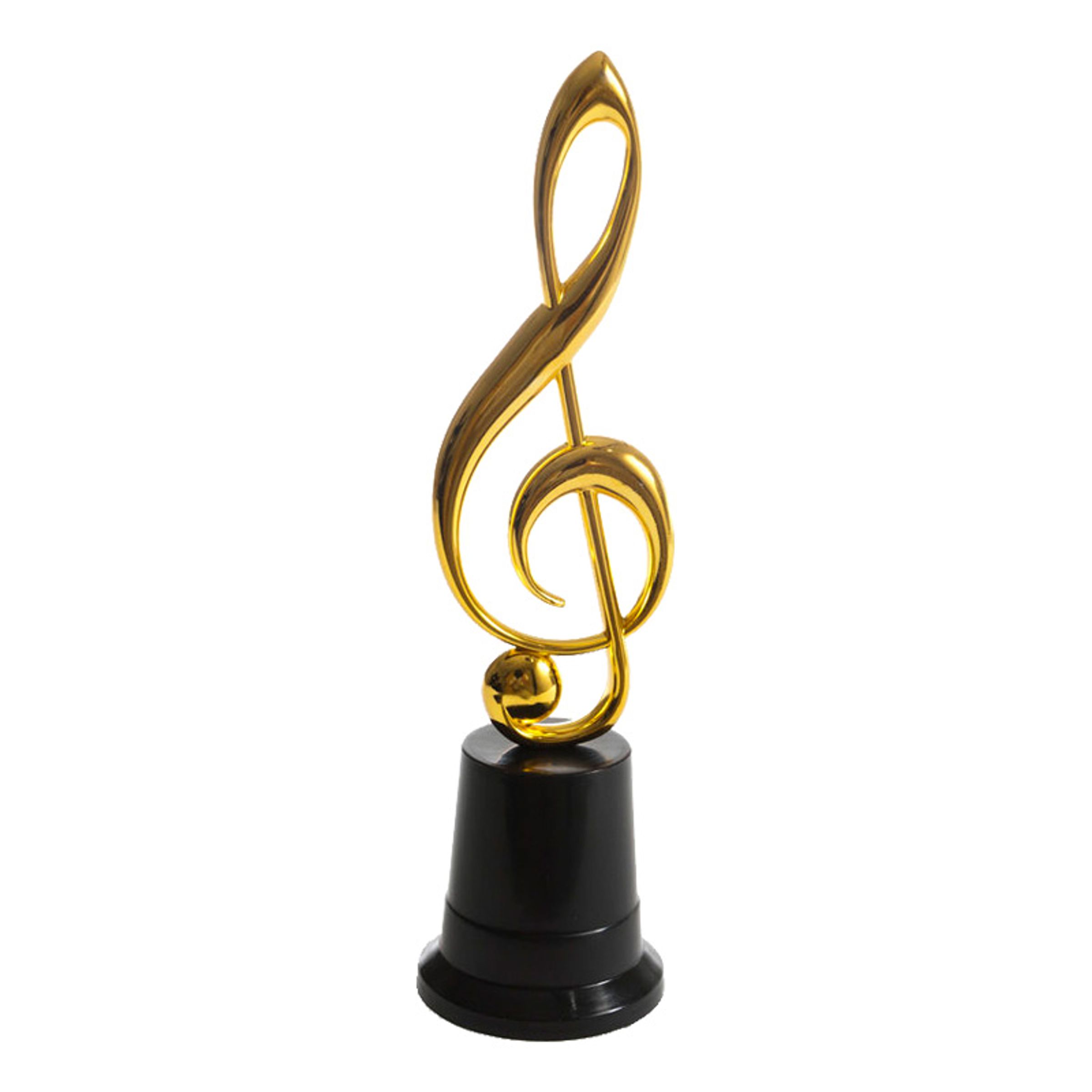 Fin guldpokal i form av en diskantklav ståendes på en svart bas.