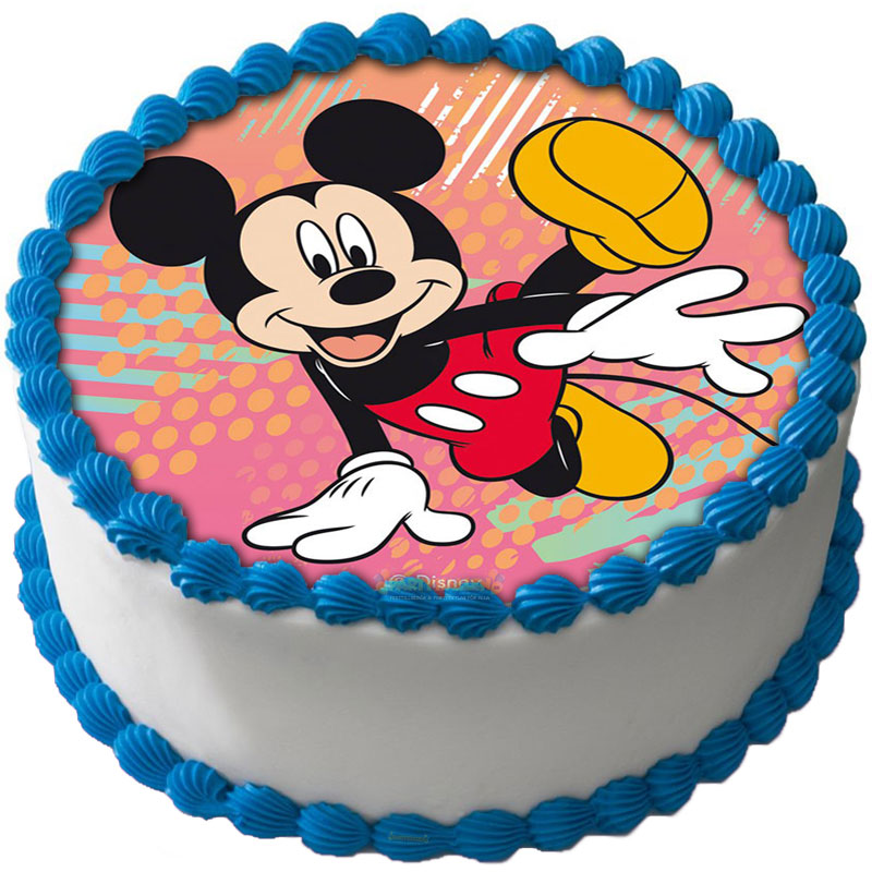 Med sina härliga pastellfärger i bakgrunden och Disneys Musse Piggs glada ansikte som dekor på denna otroligt snygga tårtbilden, kommer din tårta verkligen skina upp hela kalaset. Vare sig du har just Musse Pigg eller enbart Disney figurer som tema så blir det här ett perfekt tillägg. Med lite vatten eller gelatin gel kan du få bilden att bli lite extra snygg samt sitta bra på tårtan.