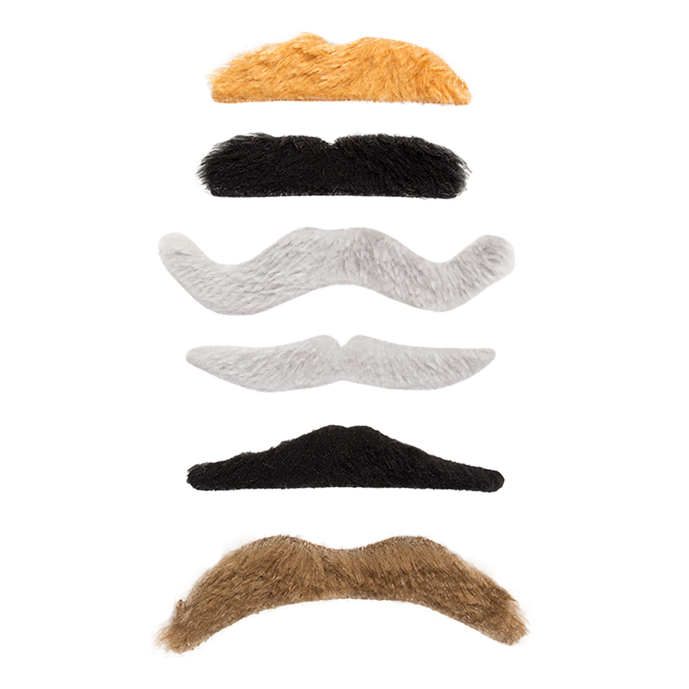 Mustascher Set inkluderar sex mustascher i olika färger och former. Det perfekta setet att ha hemma om du älskar att byta look lite då och då.