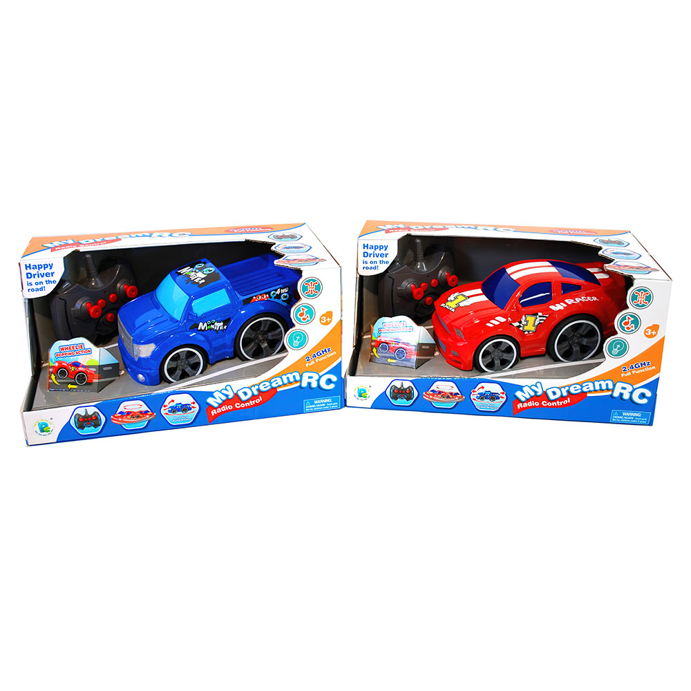 My Dream RC Radiostyrd Bil omfattar en 22 cm stor radiostyrd bil och tillhörande handkontroll. Bilen är försedd med ljud- och ljuseffekter och kan göra olika stunts som till exempel åka på bakhjulen. Bilen och kontrollen drivs av AA-batterier och finns i två olika färger, vilken färg du får slumpas. Tillverkade av plast.