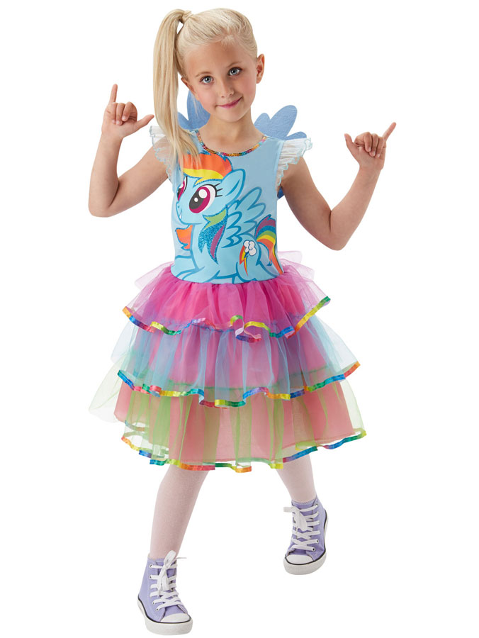 En supersöt My Little Pony klänning som förvandlar dig till en härlig pegasusponny vid namn Rainbow Dash.