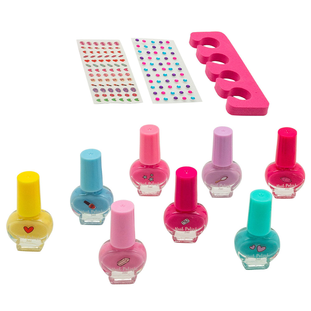 Sätt lite extra färg på leken med detta nagellack kit för barn. Med ett mångsidigt nagelset kan kreativa små barn sätta sin egen unika prägel. Perfekt nagelkit för barn och älskat nagellack set för små fingrar.