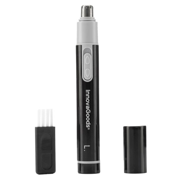 Näs- och Örontrimmer Trimpen omfattar en näs- och örontrimmer av plast och aluminium. Trimmern drivs av 1 AAA-batteri och är ca 11,3 cm lång. Medföljer även en liten rengöringsborste.