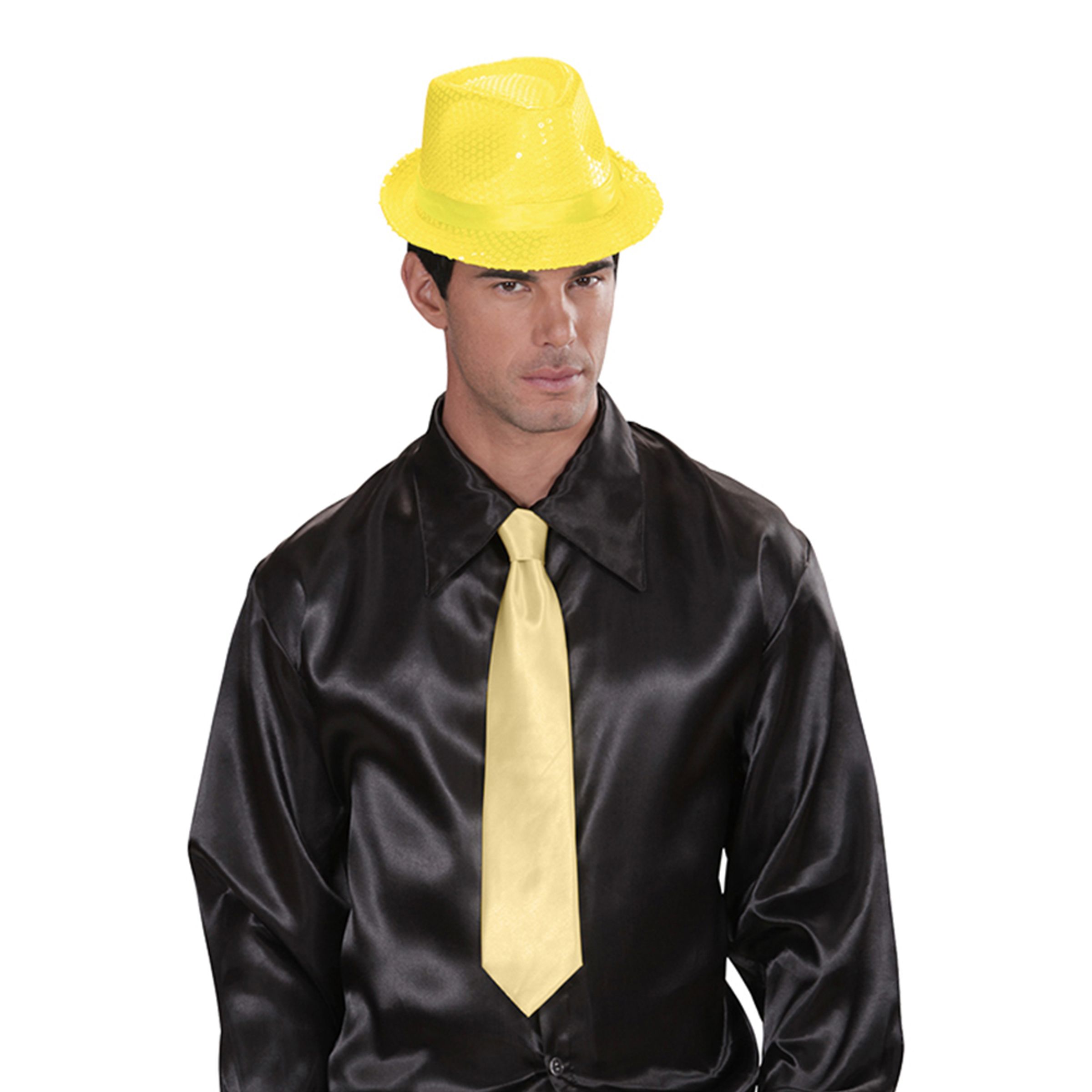 Slipsen kommer i tjusigt glansigt tyg i härlig neongul färg.