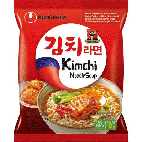 Koreanska ramenliknande snabbnudlar med soppbas med Kimchismak.