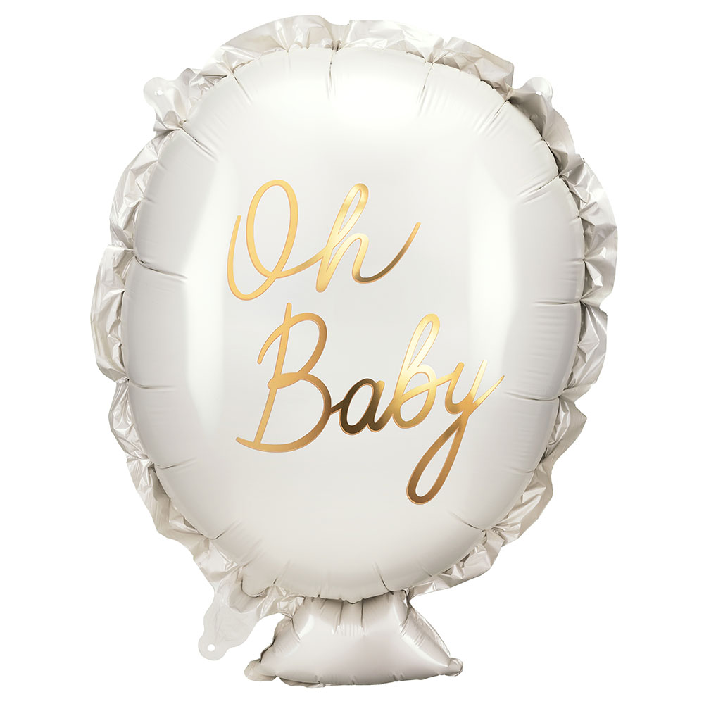 Oh Baby Folieballong är en vit folieballong med texten "Oh Baby".