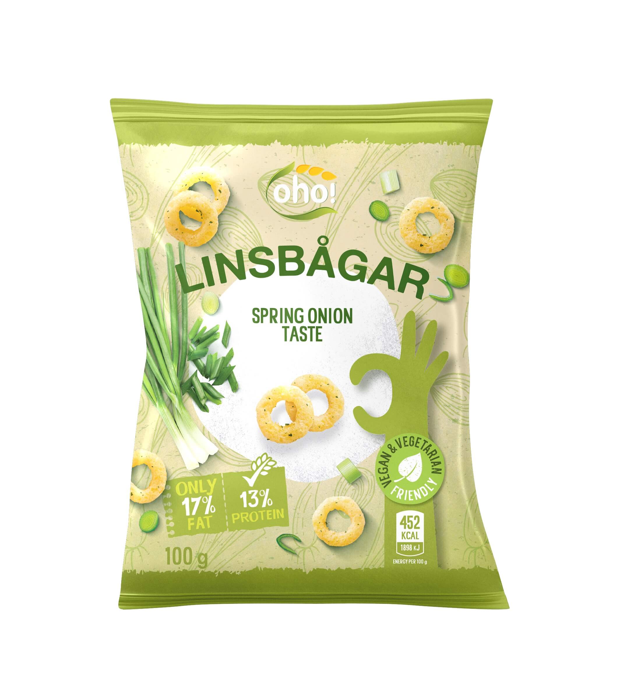 Krispiga linsringar med en smak av vårlök från Oho! Dessa lättsaltade snacks är både hälsosammare och fulla av smak, perfekta för när du vill ha något krispigt och smakrikt utan att kompromissa med kvalitet. Ett utsökt alternativ till vanliga chips.