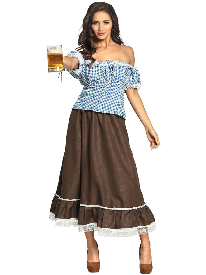 Ska du på oktoberfest är det viktigt att ha rätt utklädnad och med denna fina dräkt har du precis rätt kläder för att passa perfekt in på det stora öl-firandet! En super fin oktoberfest maskeraddräkt som består av en rutig tröja och en brun kjol med fina spetsdetaljer, lägg bara till ett par passande skor så är du med än redo för att bege dig iväg till firandet. Kort sagt en helt perfekt oktoberfest dräkt för alla som vill dressa om till en snygg öl-tjej!