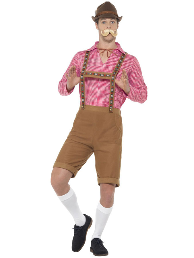 Se till att du passar in bland alla Oktoberfest gäster med denna klädsel! Dessa kläder är en klassisk Oktoberfest outfit, vilket består av en rutig skjorta och ett par lederhosen. Fullända dräkten med en tyrolerhatt och ett par knästrumpor.