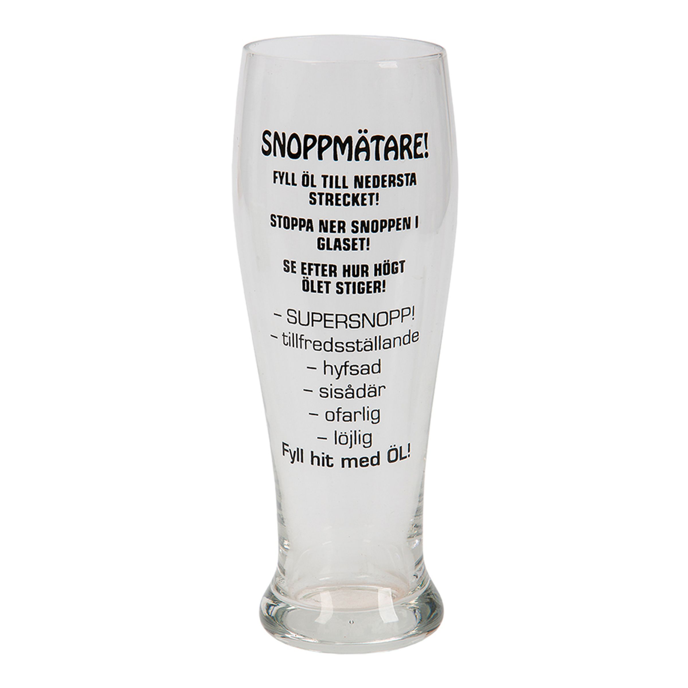 Ölglas Snoppmätare är tillverkad av gjutet glas och rymmer ca 50 cl dryck.