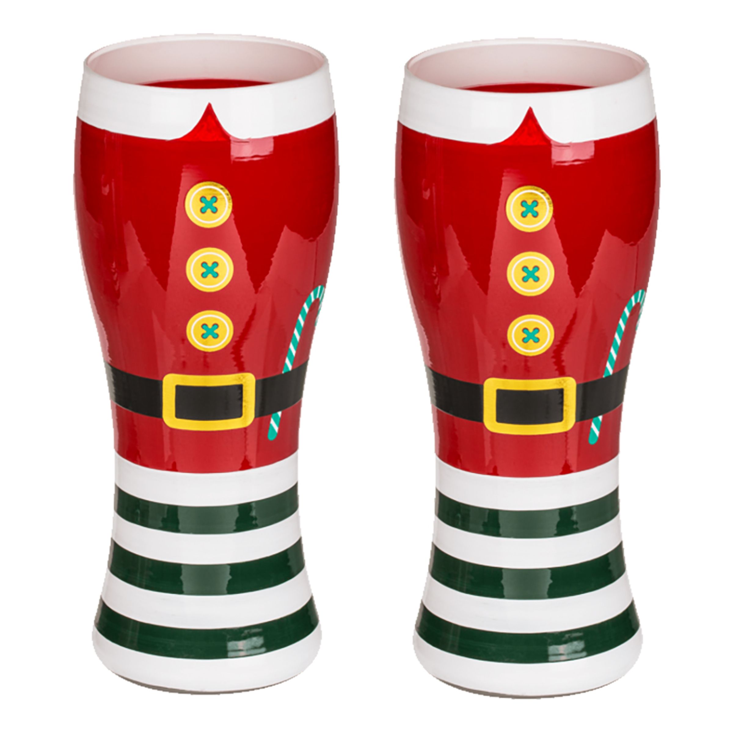 Ölglas Tomte är två roliga ölglas med motiv av tomtekostymer med roliga detaljer som knappar, bälte och polkagris. Perfekta till julfesten! Levereras i presentförpackning.