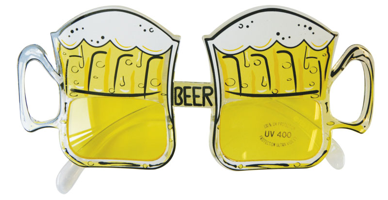 Ölglasögon omfattar ett par glasögon i form av två skummande ölglas.