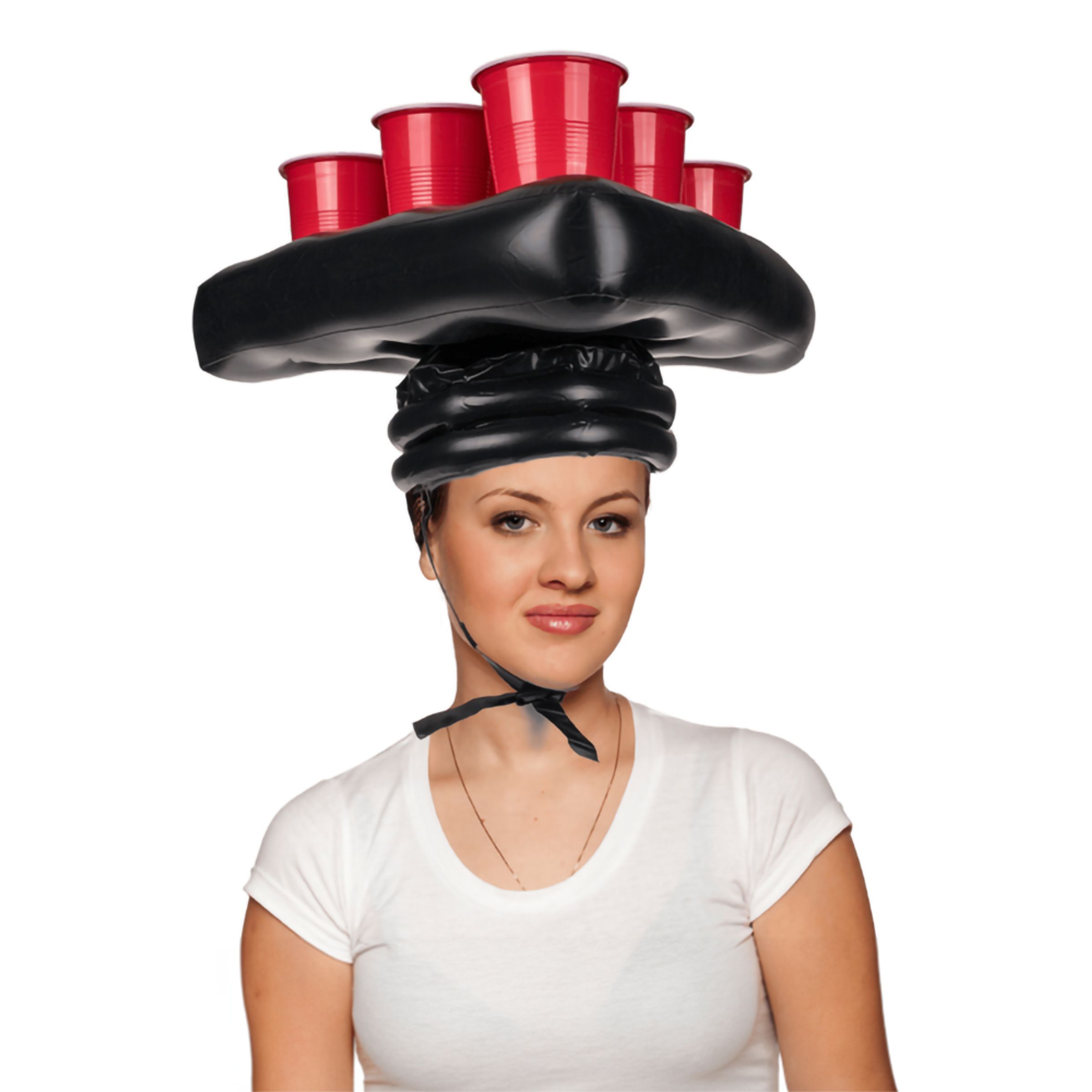Beer Pong är ett roligt spel att plocka fram på en fest med bästa polarna. I den här varianten tar ni spelet ett snäpp högre upp, nämligen till huvudet. Två spelare sätter på sig en varsin uppblåsbar hatt och sedan gäller det att kasta i pingisbollarna i muggarna som sitter på motståndarens hatt.