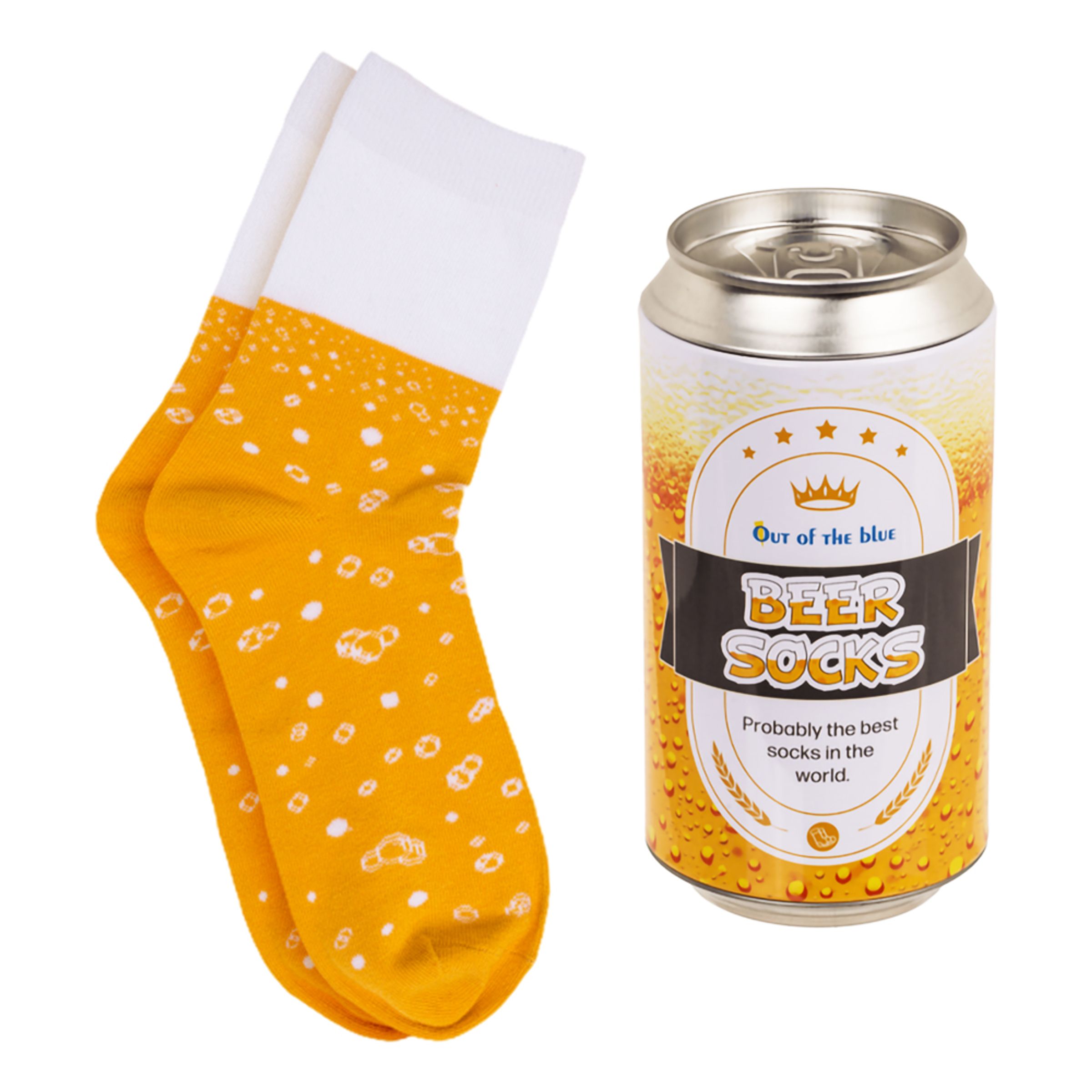 Ölstrumpor i Ölburk är ett par vita strumpor med motiv av ljus lager med ölkrona  – för den som älskar hantverksöl. Strumporna levereras i en rolig och dekorativ aluminiumburk (likt en ölburk), vilket passar perfekt när du ska ge bort strumporna som present!
