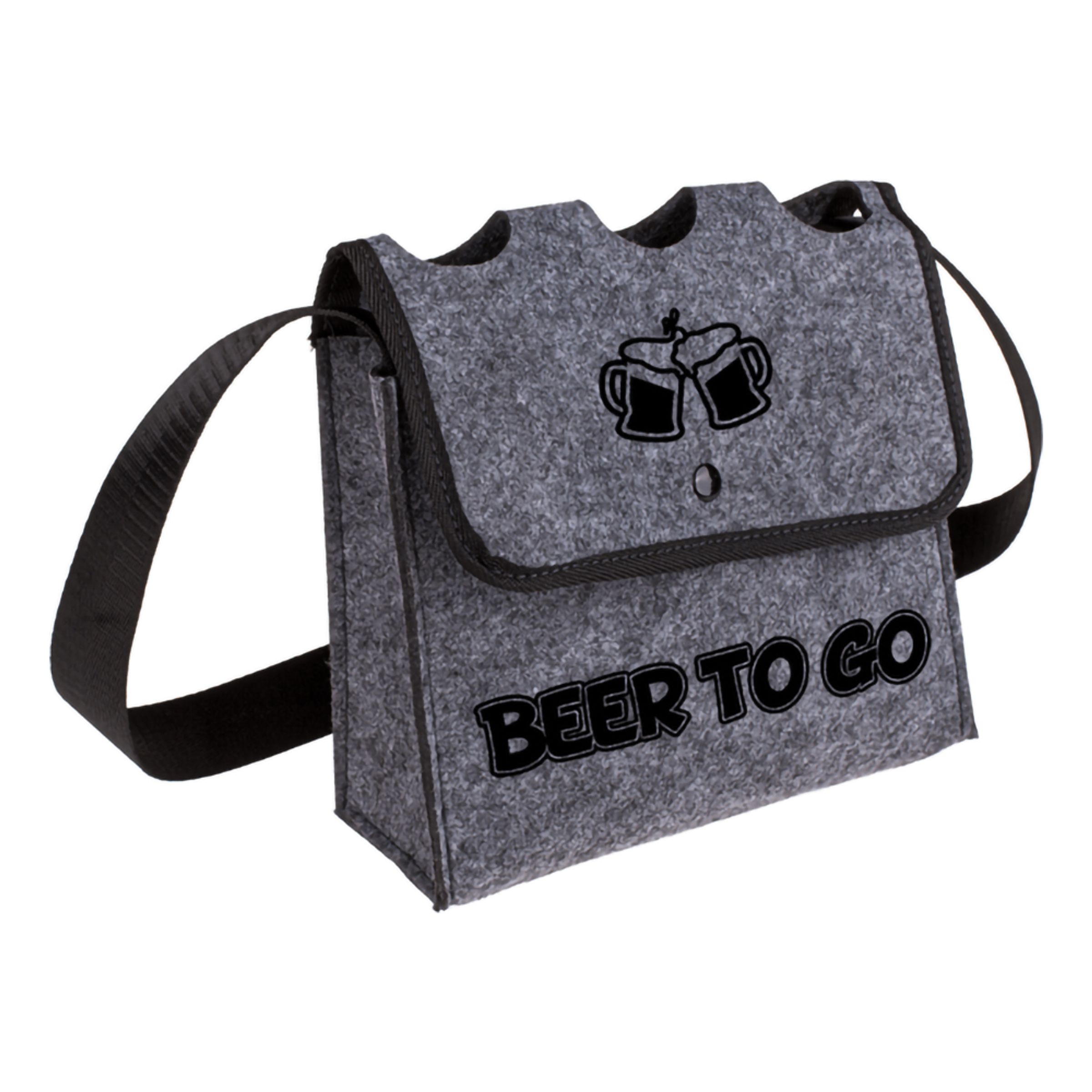 Ölväska Beer To Go är en grå filtväska med plats för tre ölflaskor. Den ultimata handväskan för tvättäkta män!