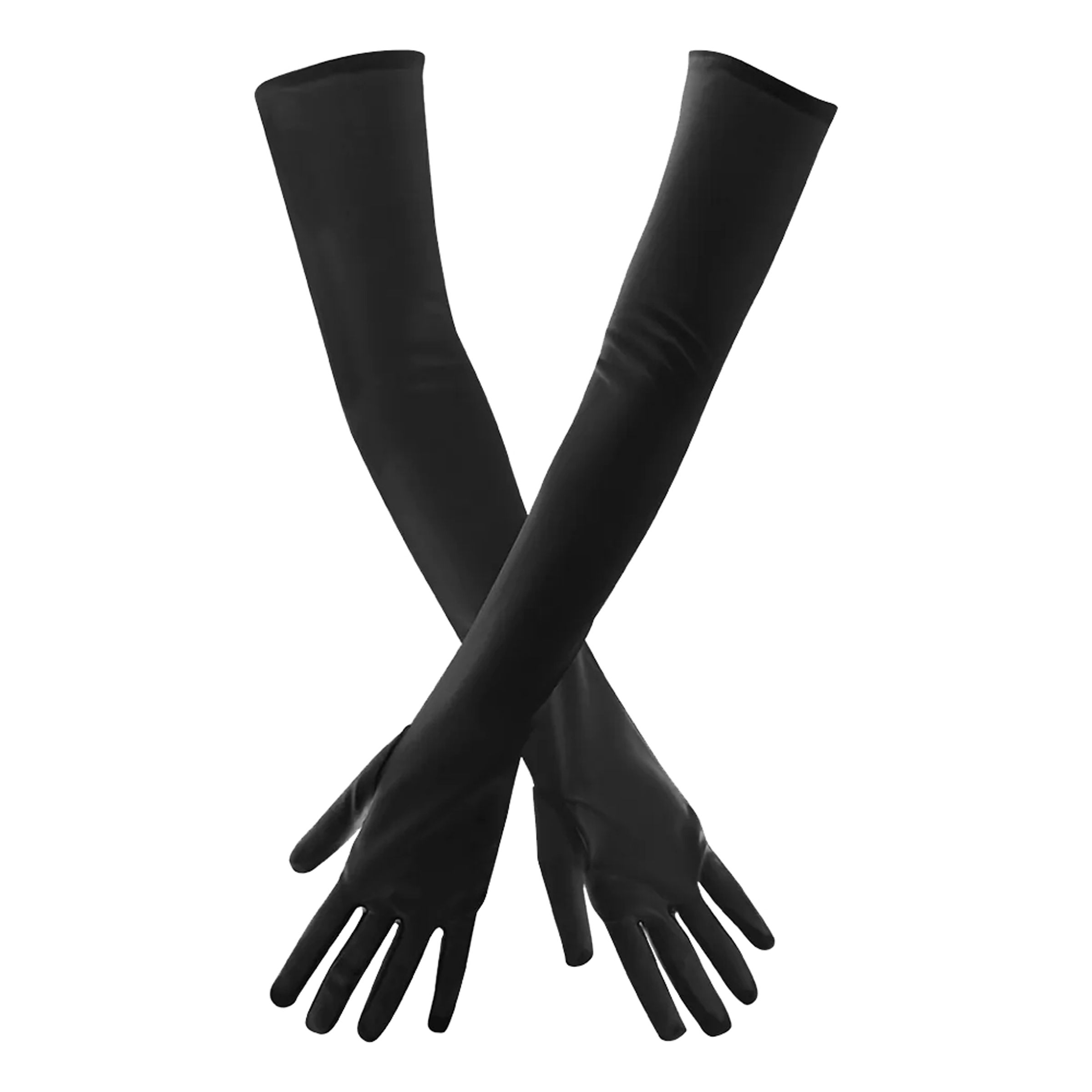Opera Långa Svarta Handskar är ett par långa handskar i mattsvart färg av polyestermaterial.
