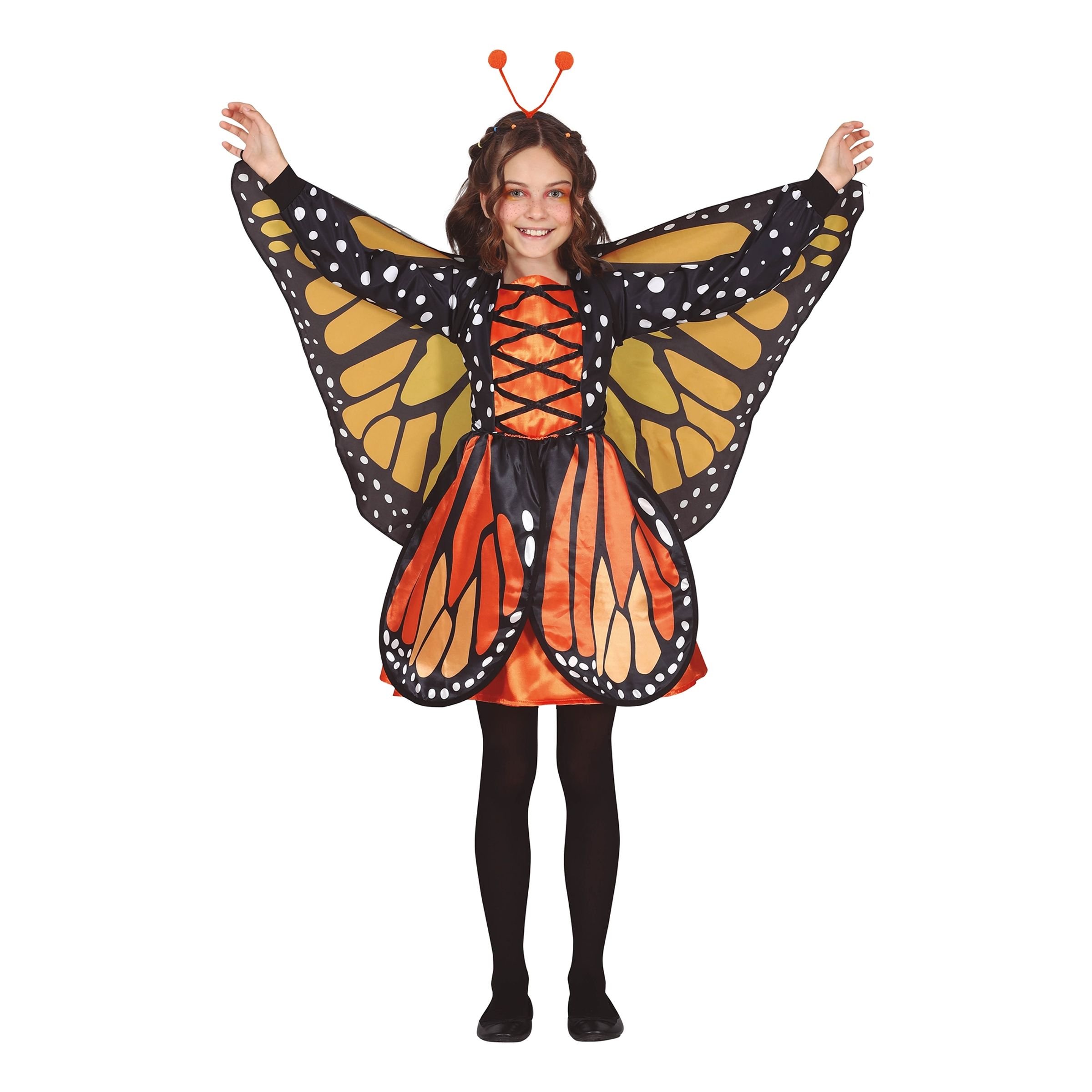 Orange Fjäril Barn Maskeraddräkt är en gullig dräkt för barn som inkluderar en orange klänning och tillhörande vingar som du fäster fast på händerna, så när du lyfter på armarna så vecklas vingarna ut likt en fjäril! Det medföljer även ett diadem som liknar fjärilens antenner!