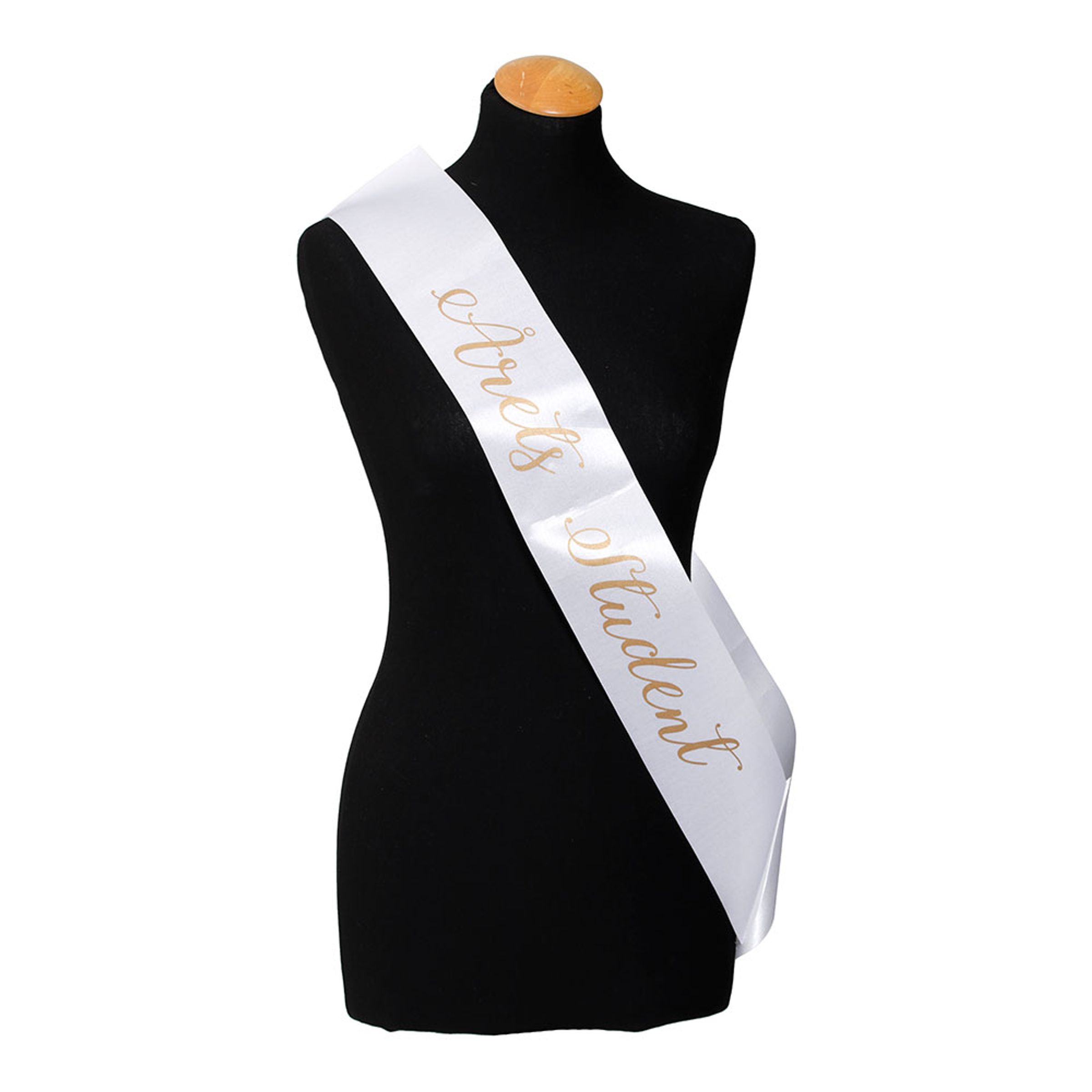 Årets student kännetecknas av hårt slit, stora ambitioner och ett stort partysug. Om du känner någon som passar in på den beskrivningen är det på sin plats att hylla personen i fråga med ett glamoröst ordensband. Passar lika bra till kostymen som den vita klänningen och kommer bli en magnifik detalj på utspringet!