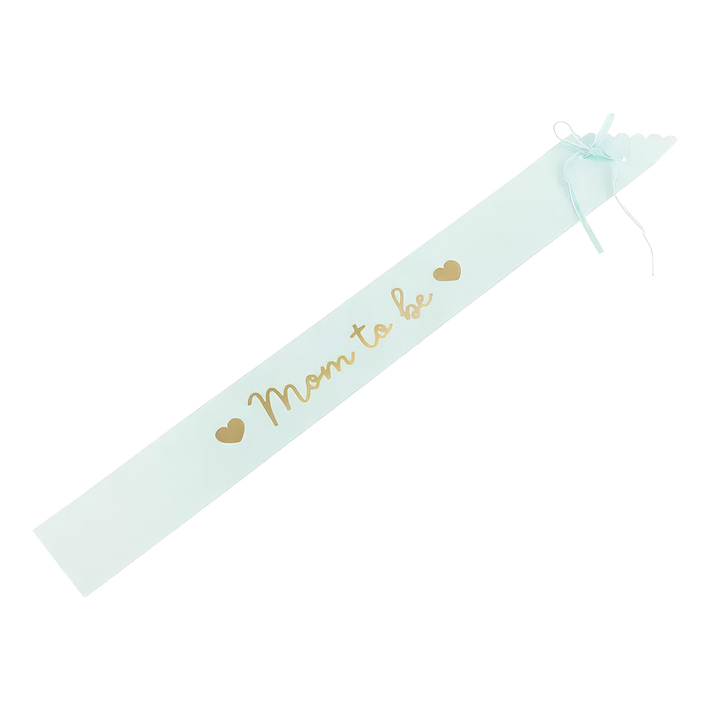 Ordensband Mom to Be Ljusblå är ett ljusblått ordensband tillverkat av papper som kommer med texten "Mom to be" skrivet i guldfärg med hjärtan intill. Bandet fästs enkelt med hjälp av den medföljande tråden.