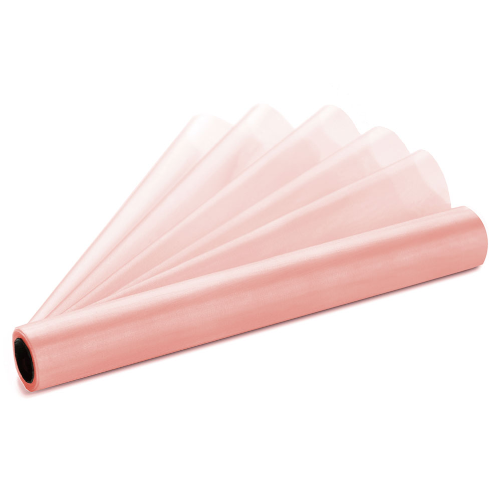 Organzatyg Rosa består av ett organzatyg på rulle i ljusrosa. Praktiskt tyg som du enkelt kan klippa av och använda till dekorationer eller pyssel.