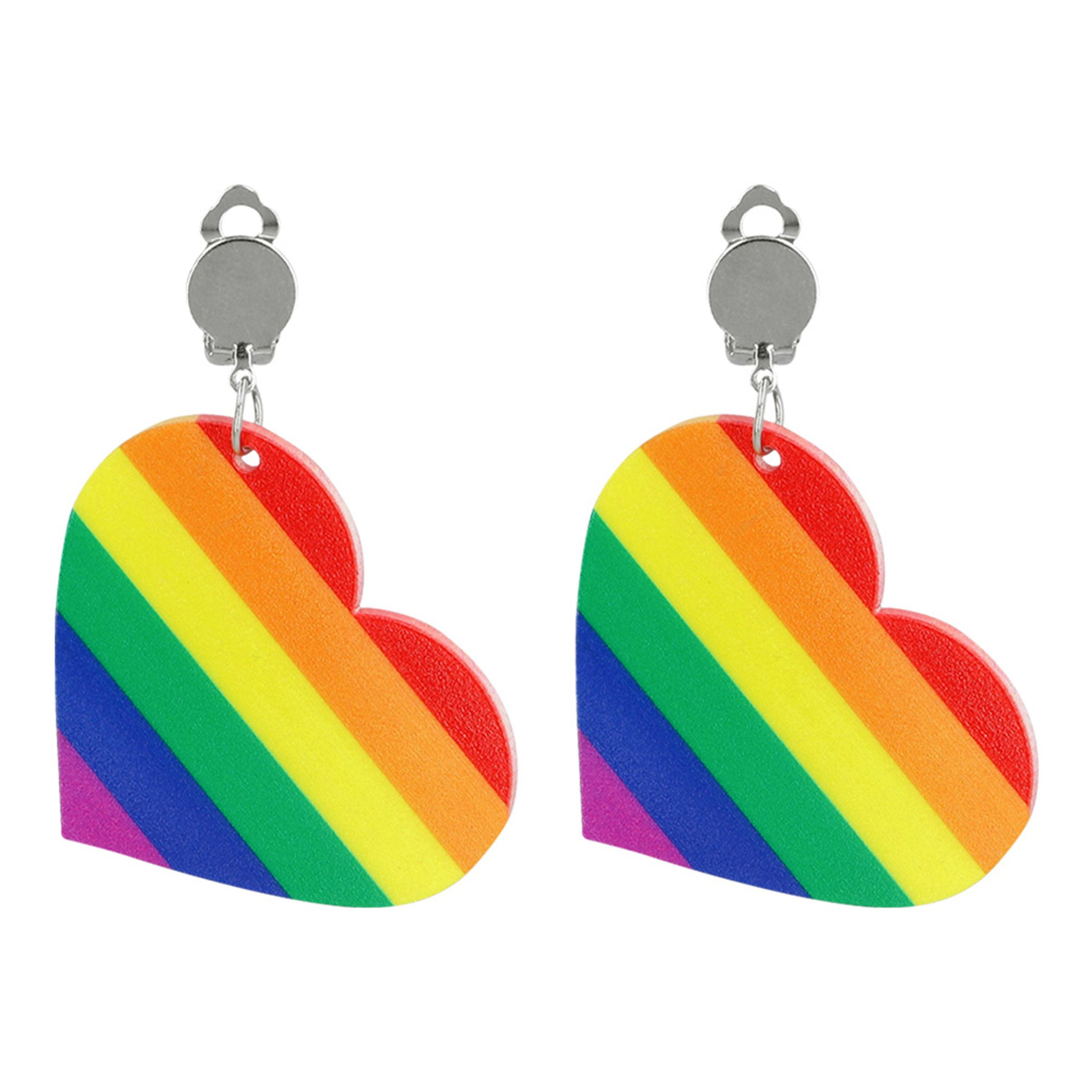 Örhängen Pride Hjärta inkluderar två stycken hjärtformade örhängen i regnbågens härliga färger. Perfekt att som accessoar använda till din outfit inför pridetåget eller regnbågsfesten!