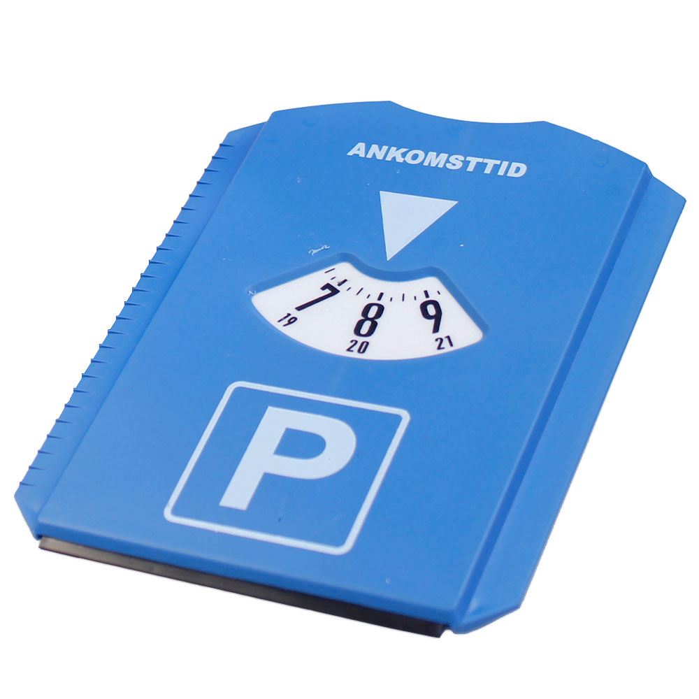 P-Skiva med Isskrapa omfattar en blå parkeringsskiva i plast med isskrapa.