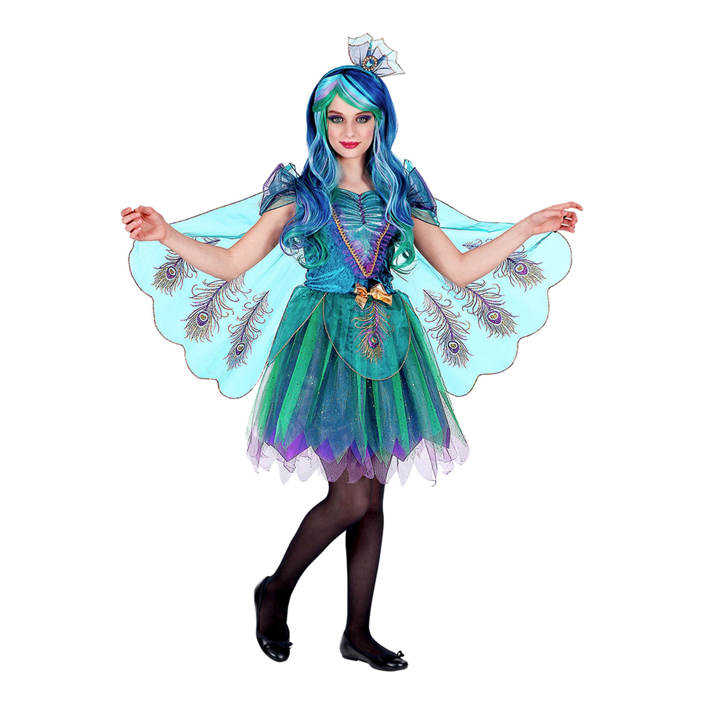 Påfågel Barn Maskeraddräkt är en häftig maskeraddräkt för barn som just efterliknar en påfågel. Dräkten är väldigt färgglad med en vacker klänning med medföljande vingar (solfjädrar) som symboliserar mod och styrka. Klänningen har typiska fjädermönster i flertalet färger, detsamma gäller med vingarna. Medföljer gör även en tiara! Perfekt att använda till maskerad- eller halloweenfesten!