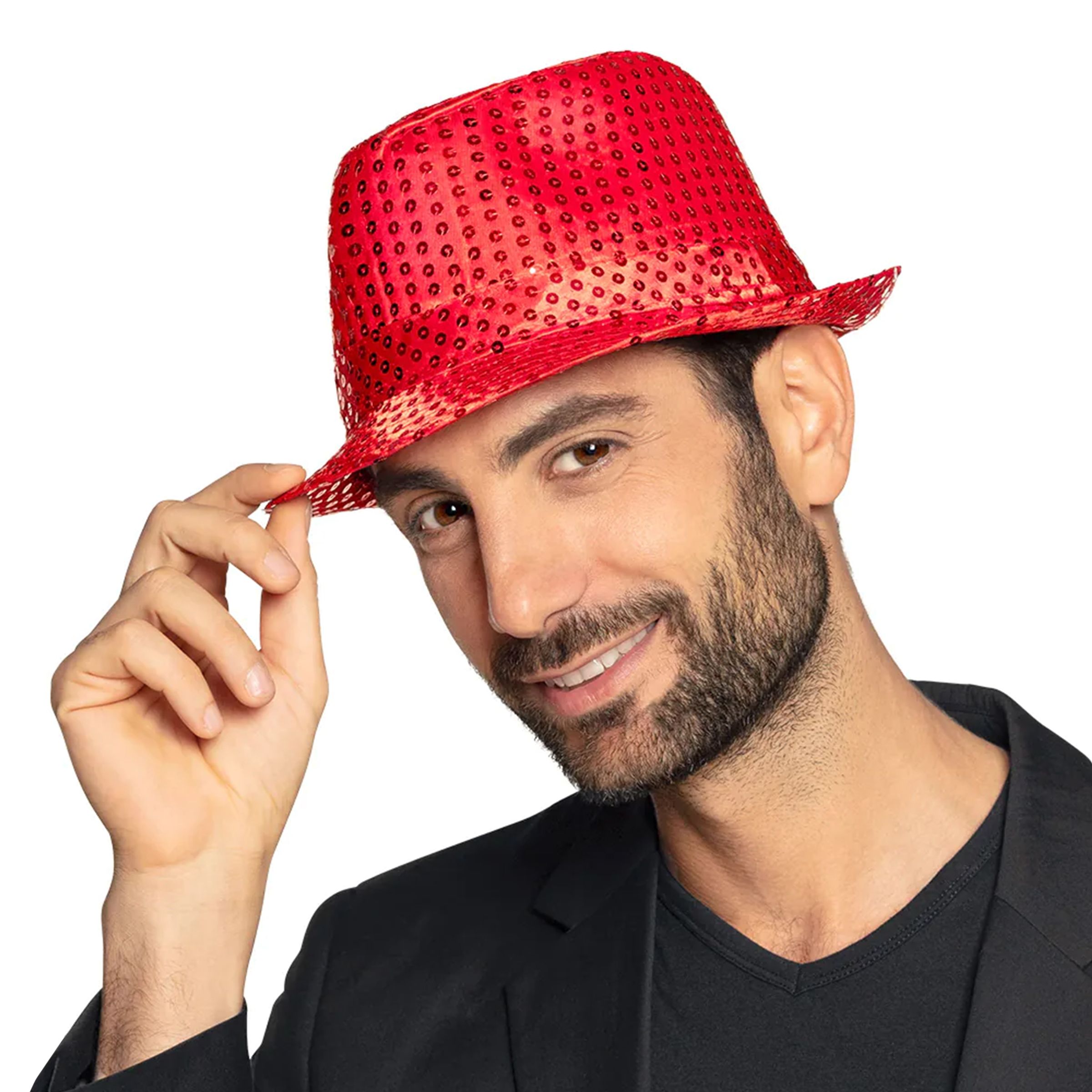 En rolig och glittrig hatt som genast kommer få dig på partyhumör! Paljetter och rött har aldrig känts som en mer självklar kombination och hatten kommer göra sig lika snygg på maskerad som på vilken dag som helst när du vill klä ut dig lite extra.