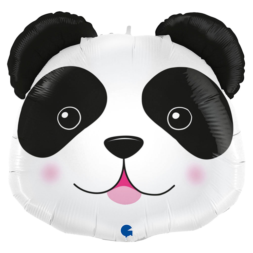 Panda Folieballong omfattar en folieballong i form av en svart och vit panda med glatt ansikte och utstickande öron.