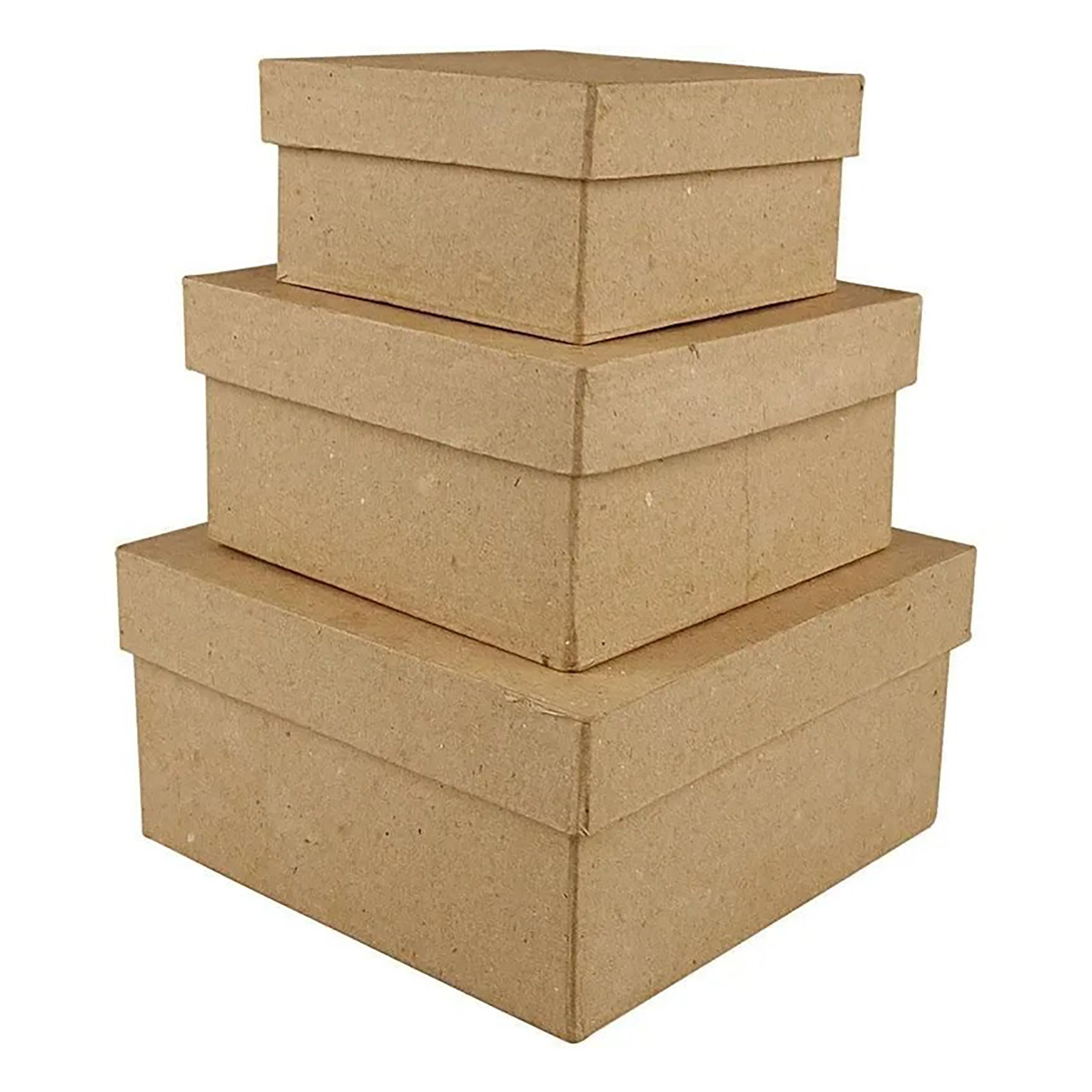 Pappaskar Kvadratiska inkluderar tre stycken naturfärgade askar i papp som passar utmärkt till såväl förvaring som till presentinslagning av julklappar och födelsedagspresenter. Kommer i tre olika storlekar.