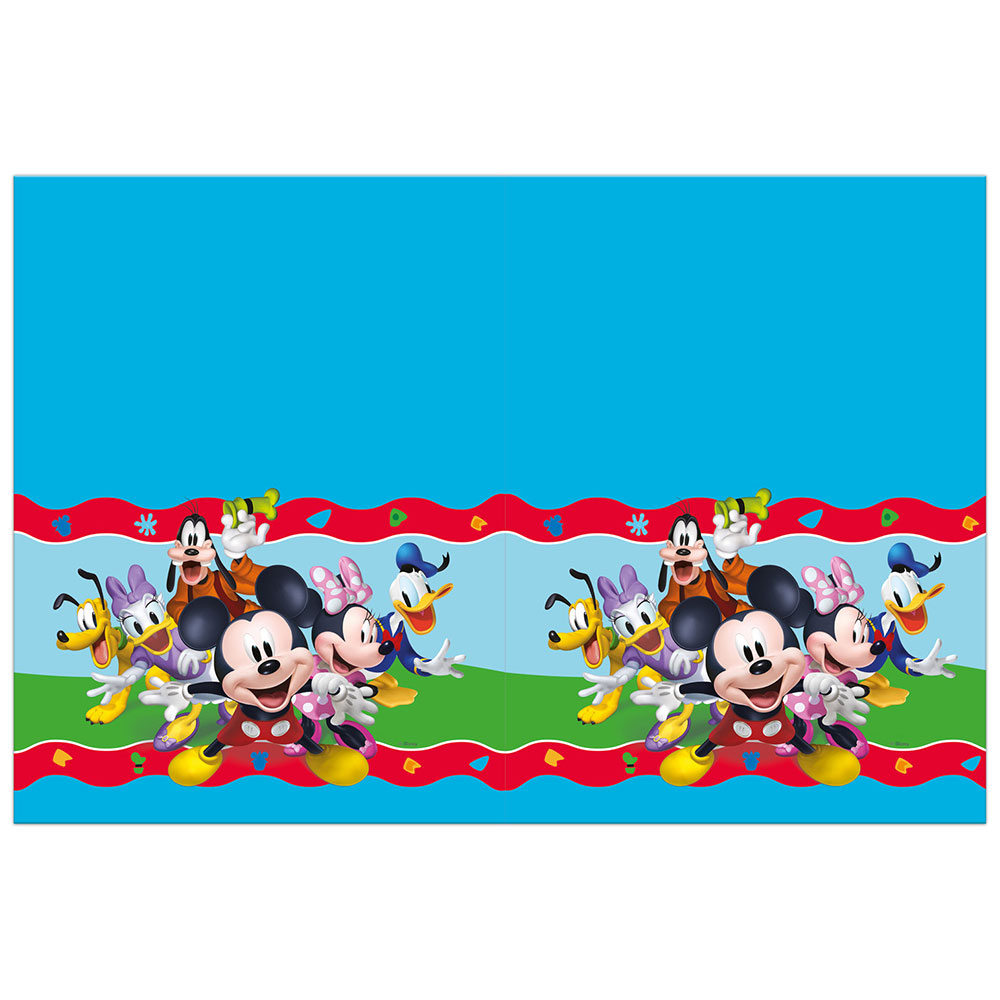 Pappduk Musse Pigg Rock the House omfattar en 120 x 180 cm stor pappduk i blått med färgglatt motiv av Musse Pigg och hans vänner.