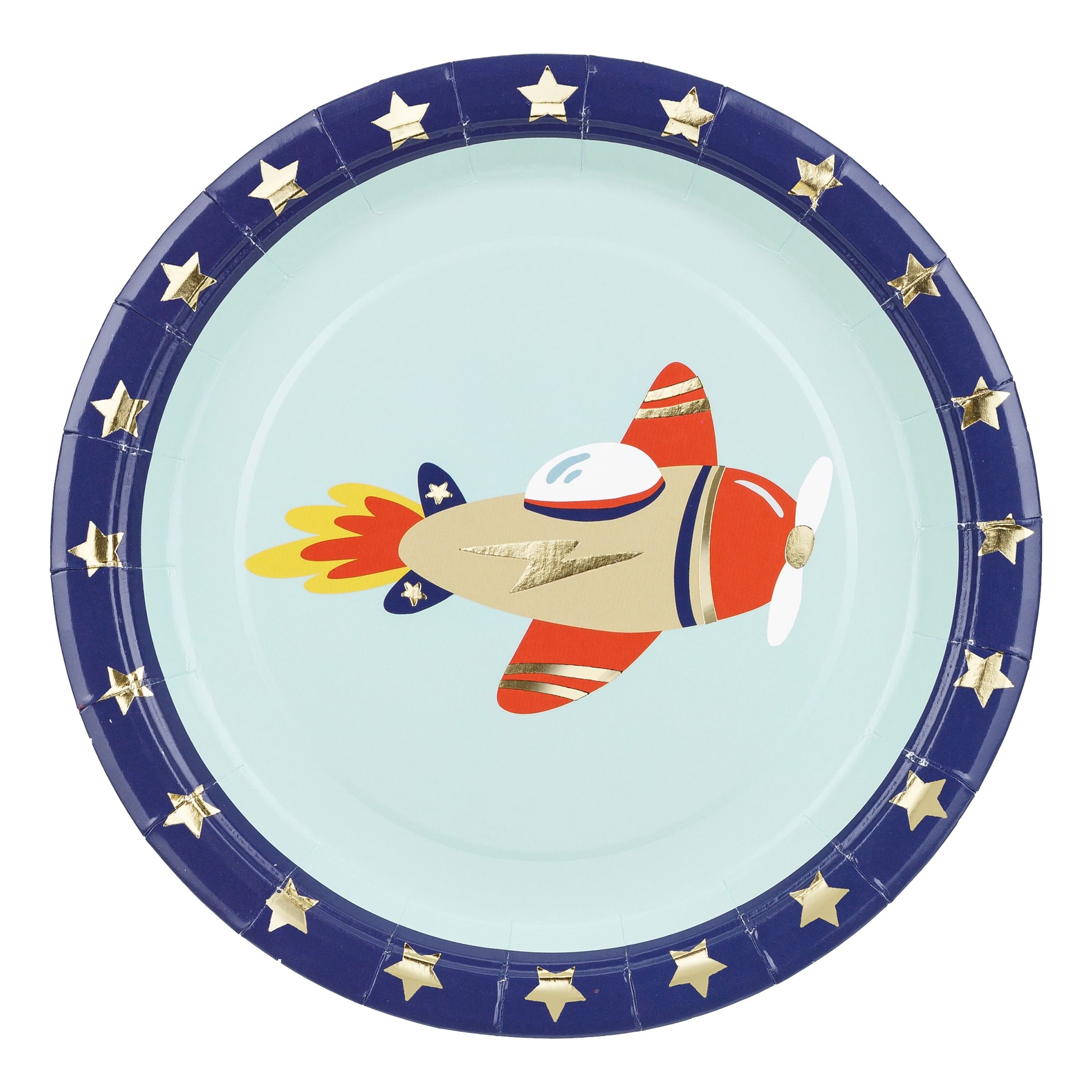 Pappersassietter Flygplan innehåller 6 stycken mindre assietter som alla mäter 18 x 18 cm och pryds av högt flygande propellerplan!