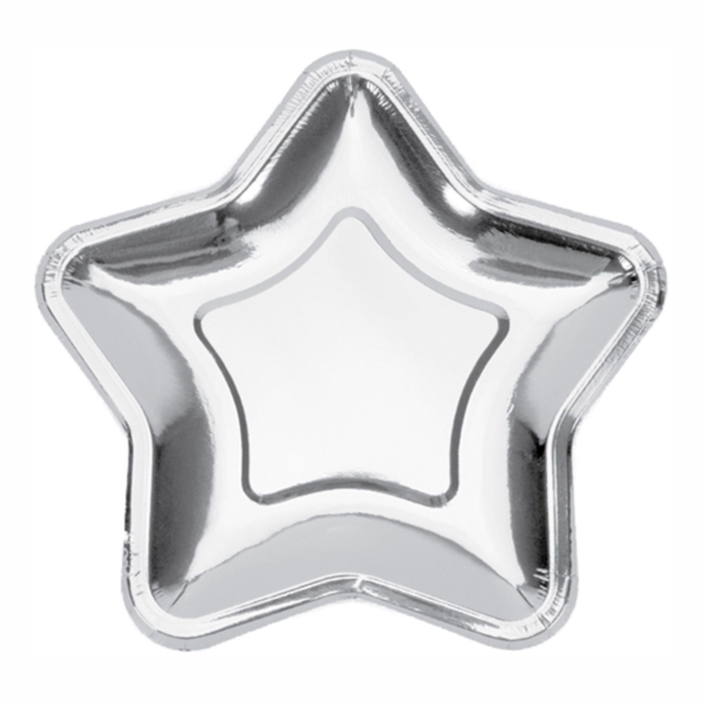 En stjärspäckad fest kräver stjärnformade assietter! Den här varianten kommer i en lyxig silverfärg som kommer få kalasmaten att se extra elegant ut! Passar perfekt på både nyårsafton och bröllopsfesten!