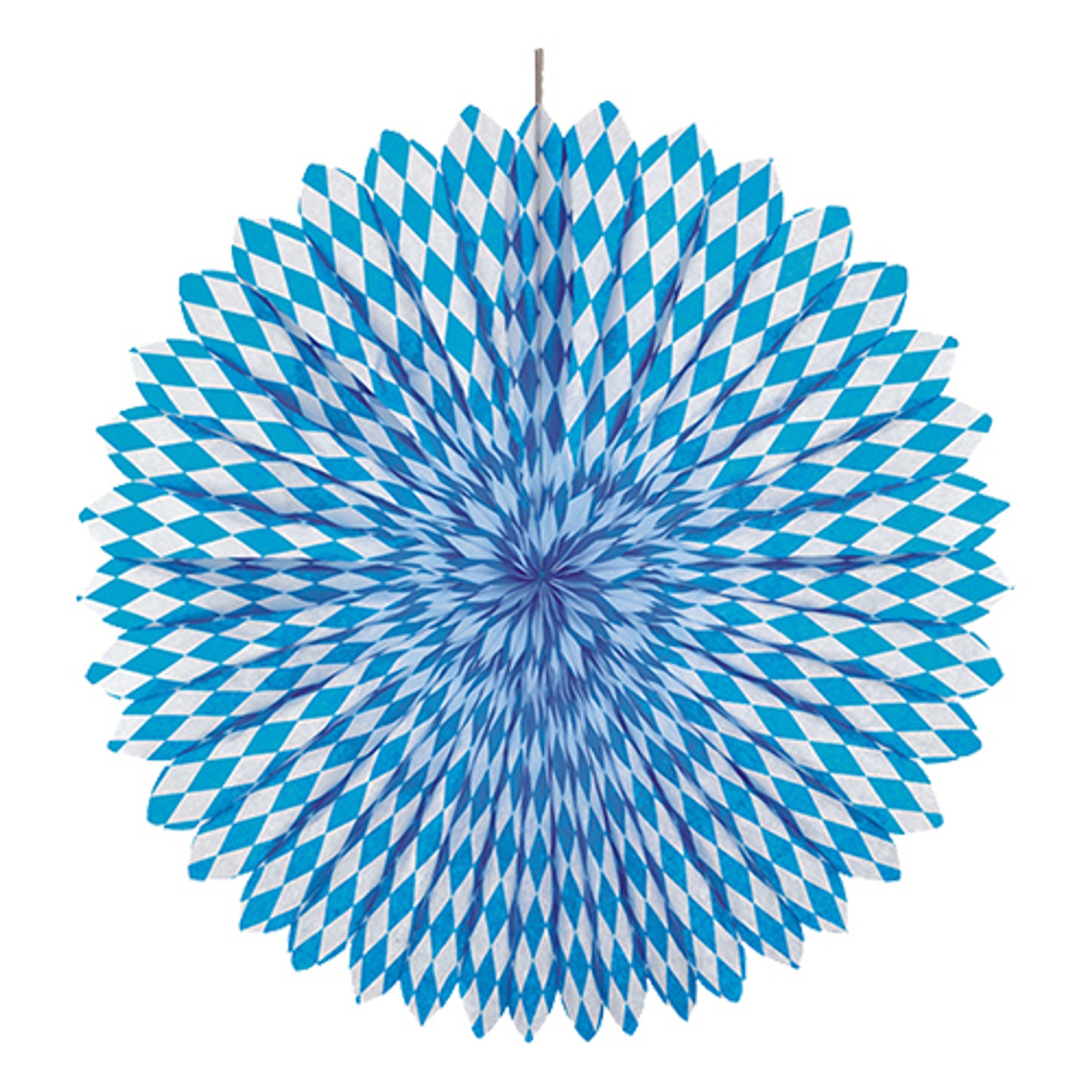 Pappersblomma Bayersk Blå Hängande Dekoration är flamsäker och mäter hela 75 cm i diameter. Levereras med snöre för enkel upphängning i taket.