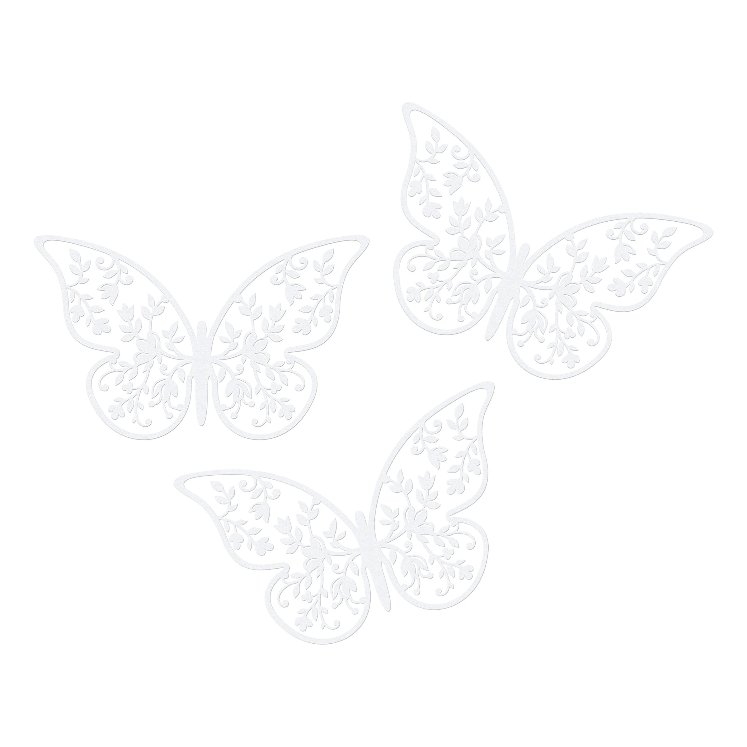 Pappersdekorationer Fjärilar Vita inkluderar tio stycken vackra pappersdekorationer i form av små fjärilar som passar utmärkt att sprida ut över bordet som en vacker detalj till dukningen.