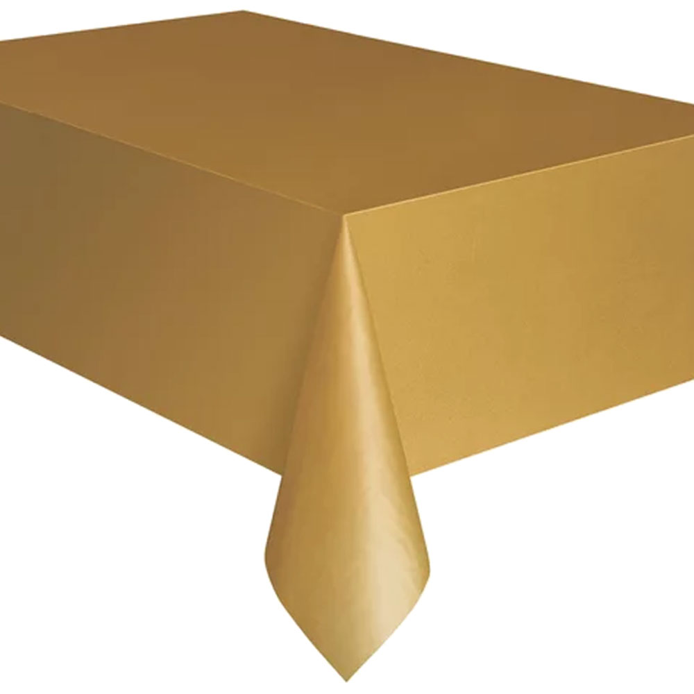 Pappersduk Guld omfattar en guldfärgad bordsduk i papper. Bordsduken kan antingen användas till ett långt bord eller delas i två delar för att användas till två fyrkantiga bord.