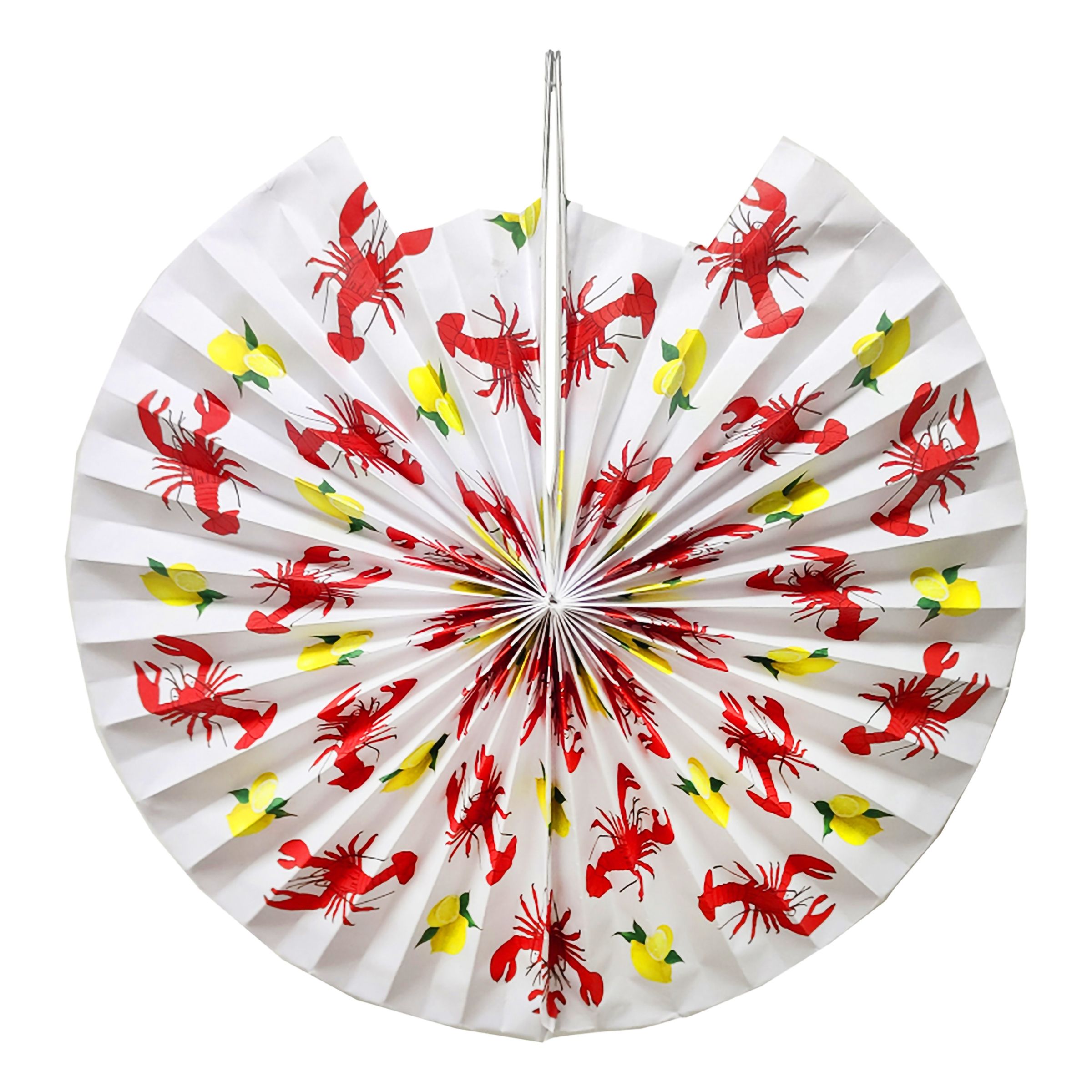 Pappersfjäder Kräftor är en hängande dekorationer (festlykta) som kommer med vit bakgrund och motiv förställande kräftor och citroner. Hängs enkelt upp med hjälp av ett snöre eller en krok.