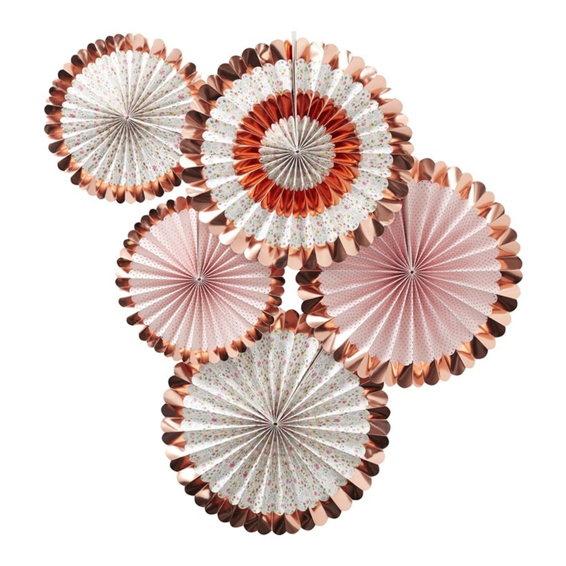 Pappersfjädrar Blomster Roséguld innehåller fem stycken hängande dekorationer som passar utmärkt till kalas och fester. Paketet innehåller tre stycken stora dekorationer som är 38 x 3 cm och 2 stycken mindre dekorationer som är 28 x 1,5 cm. Pappersfjädrarna är dekorerade med många fina detaljer och kanter i roséguld.