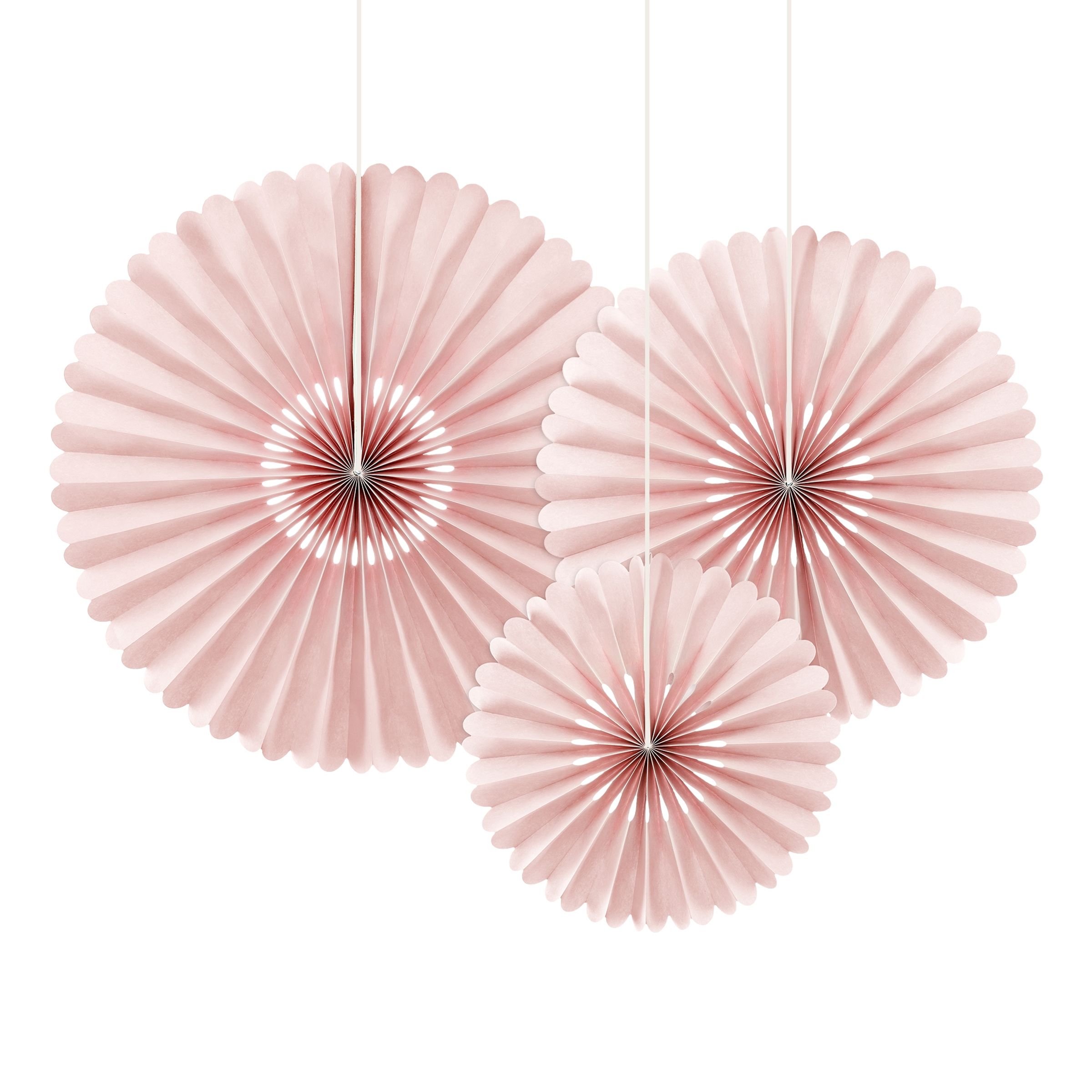 Pappersfjädrar Puderrosa inkluderar tre stycken hängande pappersdekorationer som kommer i tre olika storlekar för extra effekt. Pappersfjädrarna levereras ihopvikta och monteras enkelt upp på nolltid.