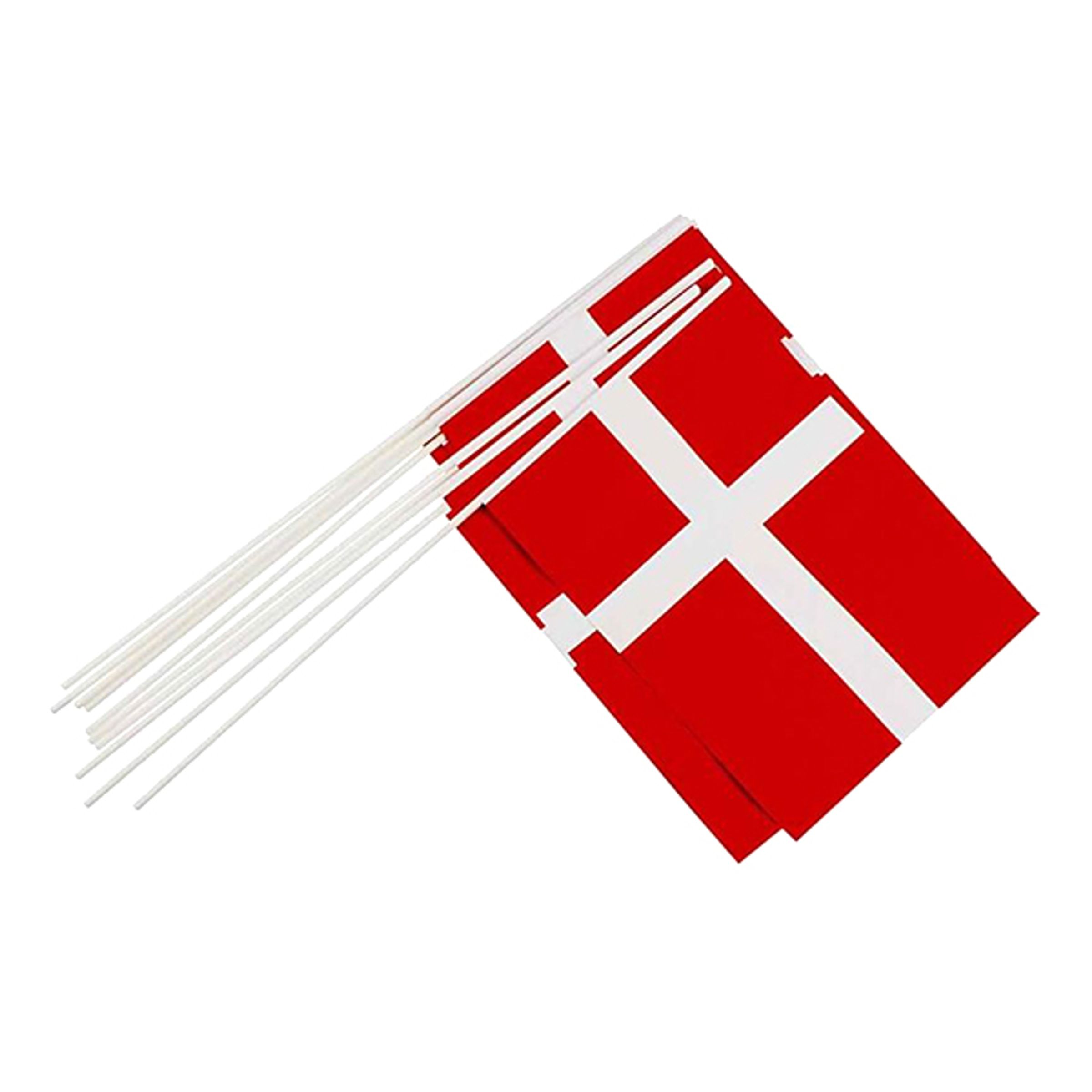 Pappersflaggor Danmark är en flagga av papper med en pinne av plast. Perfekt för evenemang där Danmarks står i fokus. Levereras i 10-pack.