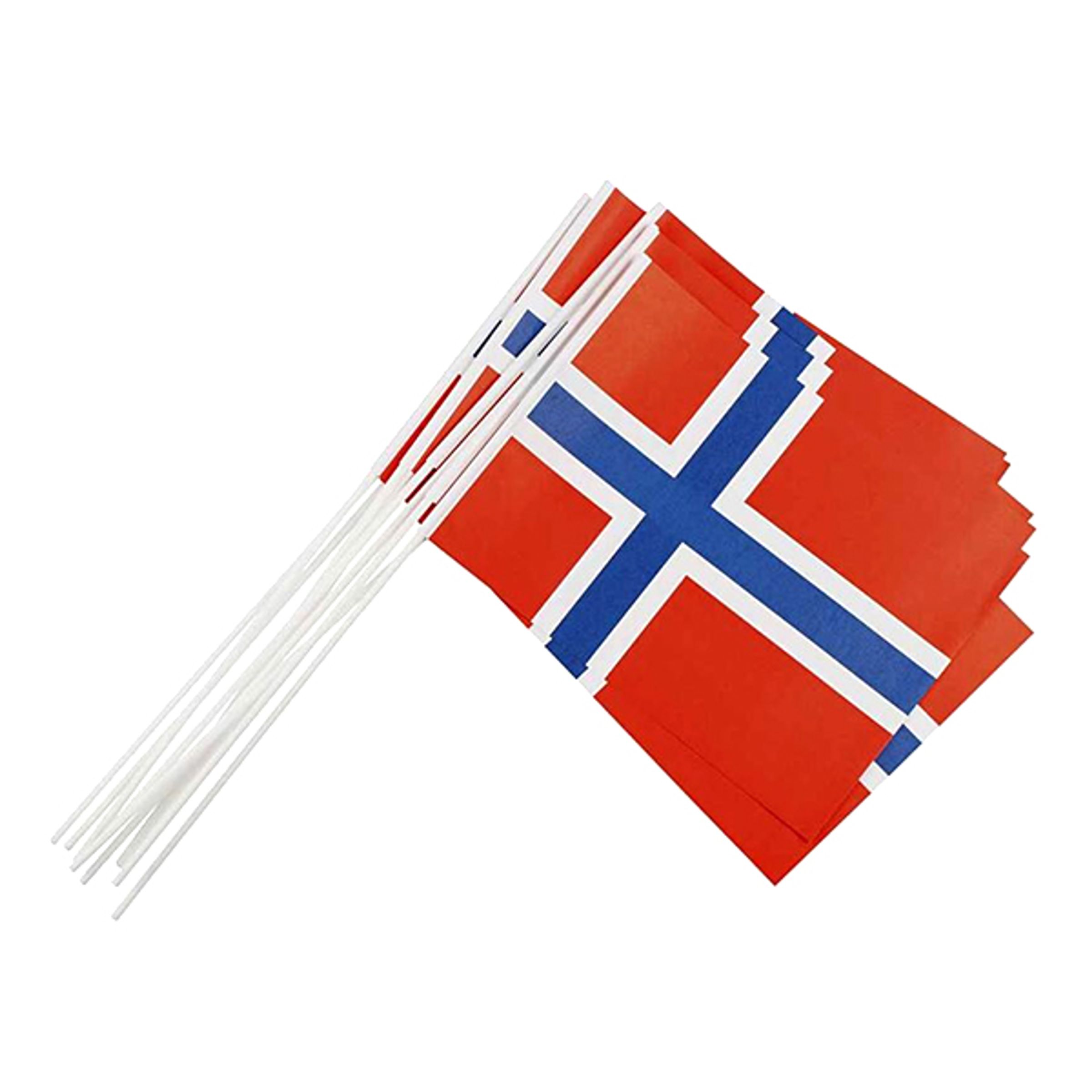 Pappersflaggor Norge är en handflagga i papper med en pinne av plast. Levereras i 10-pack.