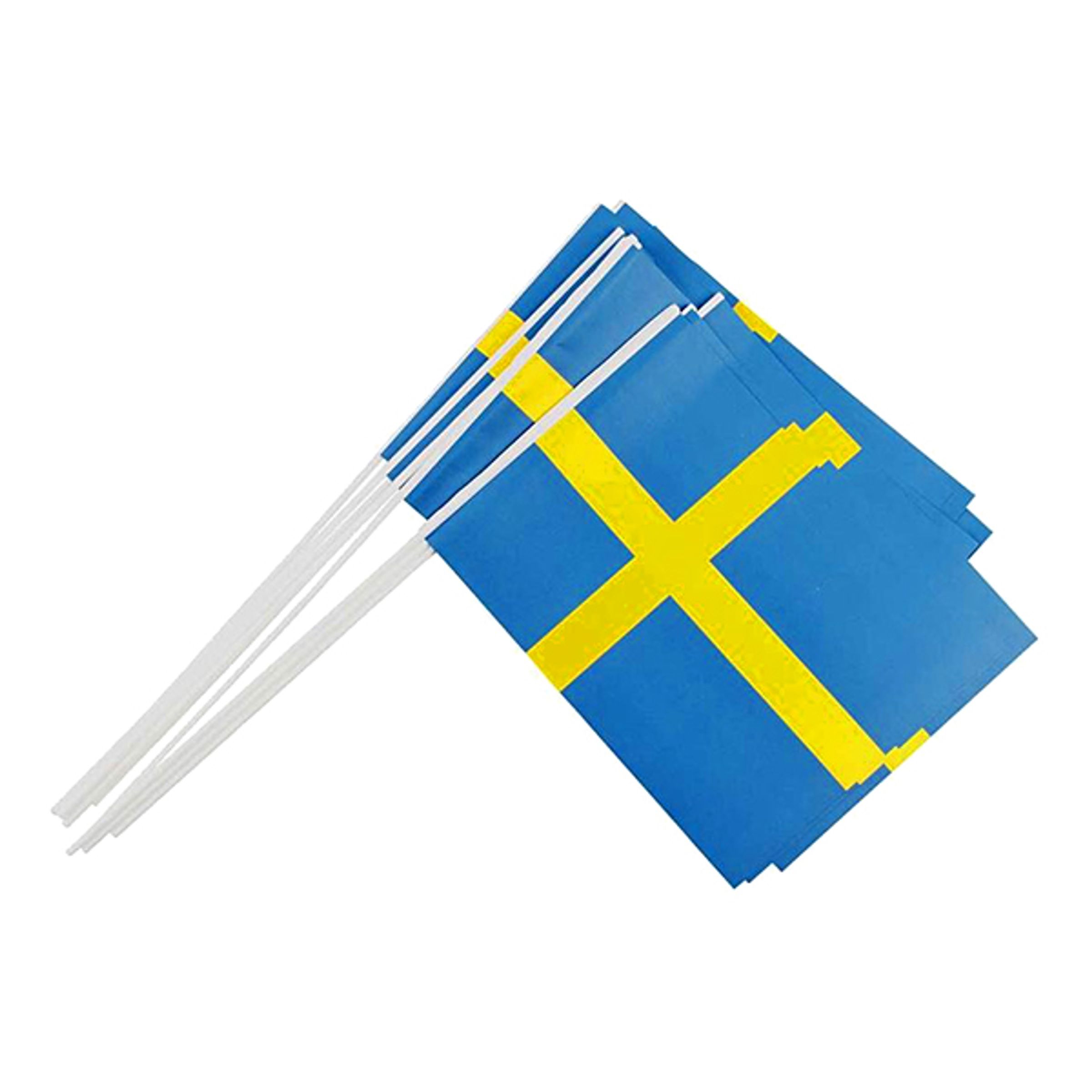 Pappersflaggor Sverige är handflaggor av papper med en pinne av plast. Levereras i 10-pack.